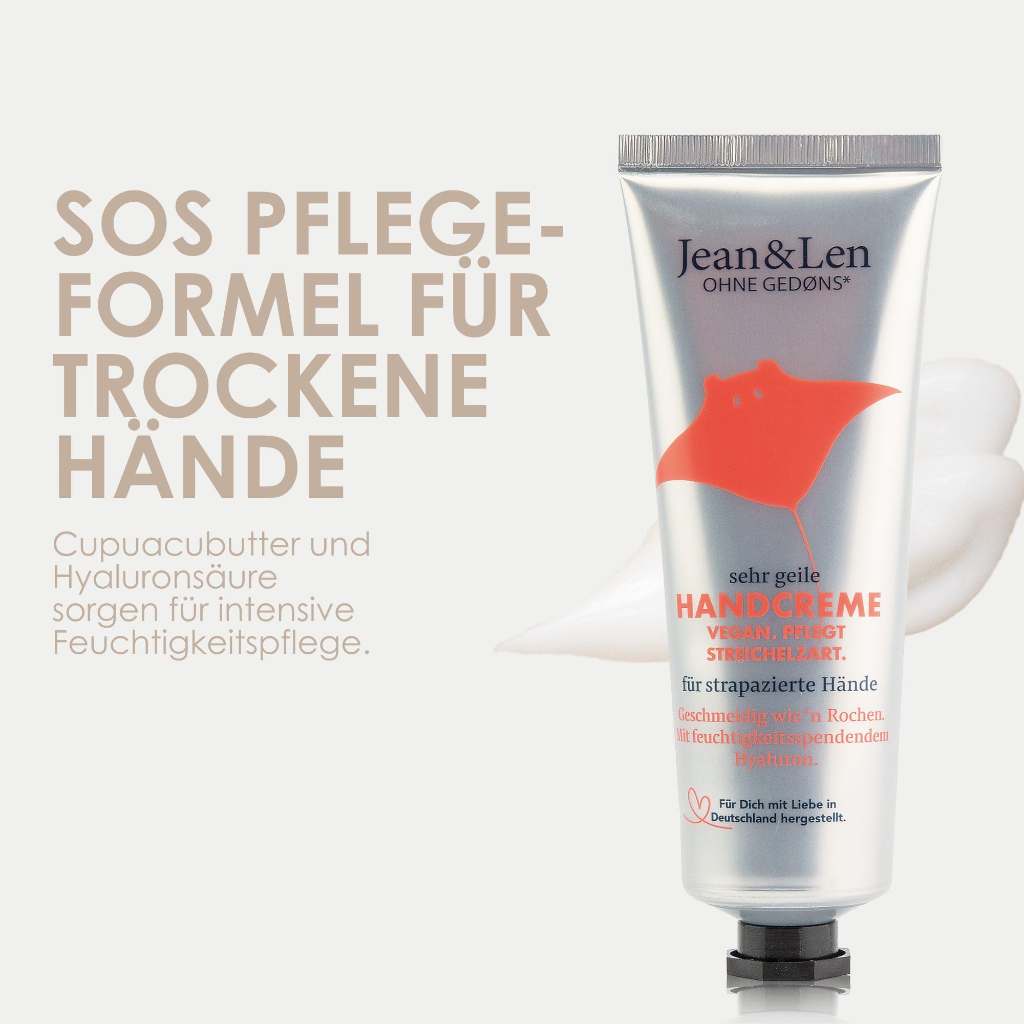 Jean & Len – Sehr geile Handcreme Neutral, Handpflege für strapazierte Hände, pflegt intensiv, ohne Parabene und Silikone, vegan, Handcreme Tube, 75 ml