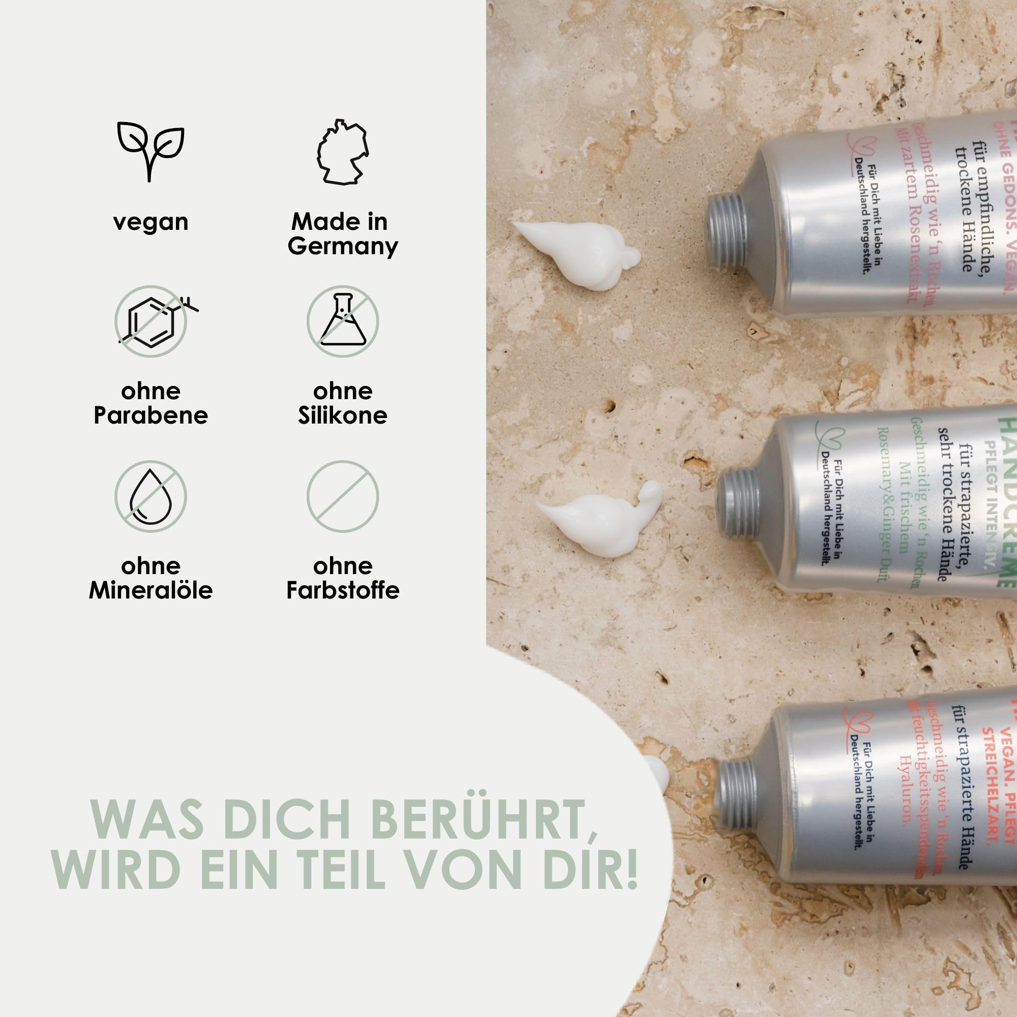 Jean & Len Sehr geile Handcreme Rosemary & Ginger, mit Urea, Handpflege für trockene und rissige Hände, spendet Feuchtigkeit und pflegt intensiv, ohne Parabene und Silikone, Tube, 75 ml