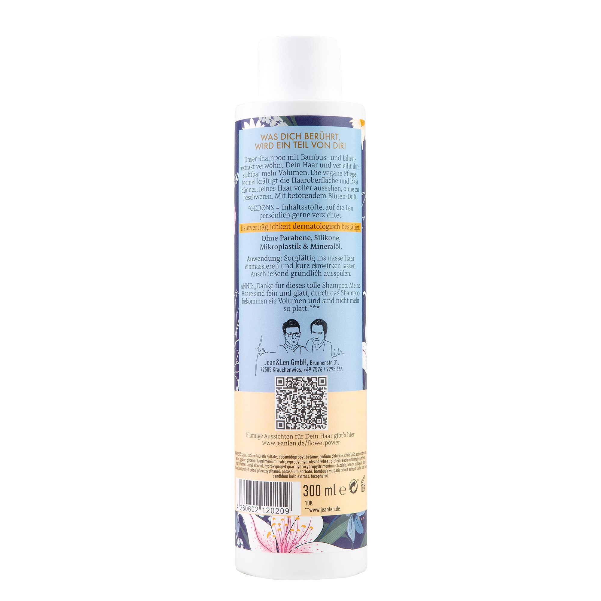 Jean & Len Shampoo Volumen Bambus & Lilie, für dünnes und feines Haar, verleiht Fülle und Glanz, Blüten-Duft, ohne Parabene und Silikone, vegan, 300 ml (Packung mit 2)