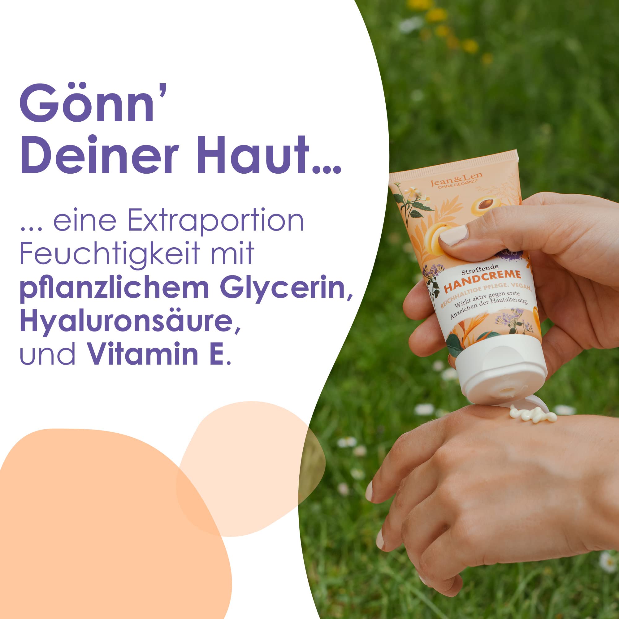Jean & Len straffende Handcreme mit Aprikosenkernöl & Q10, reichhaltige Pflege für trockene Hände, ohne Parabene & Silikone, 75 ml