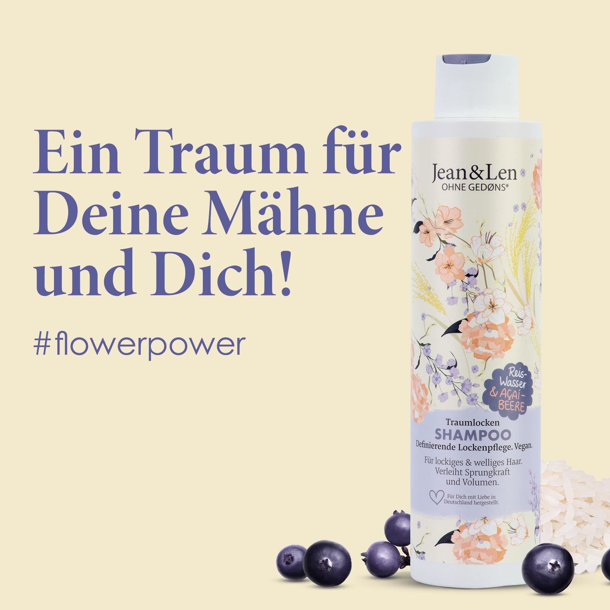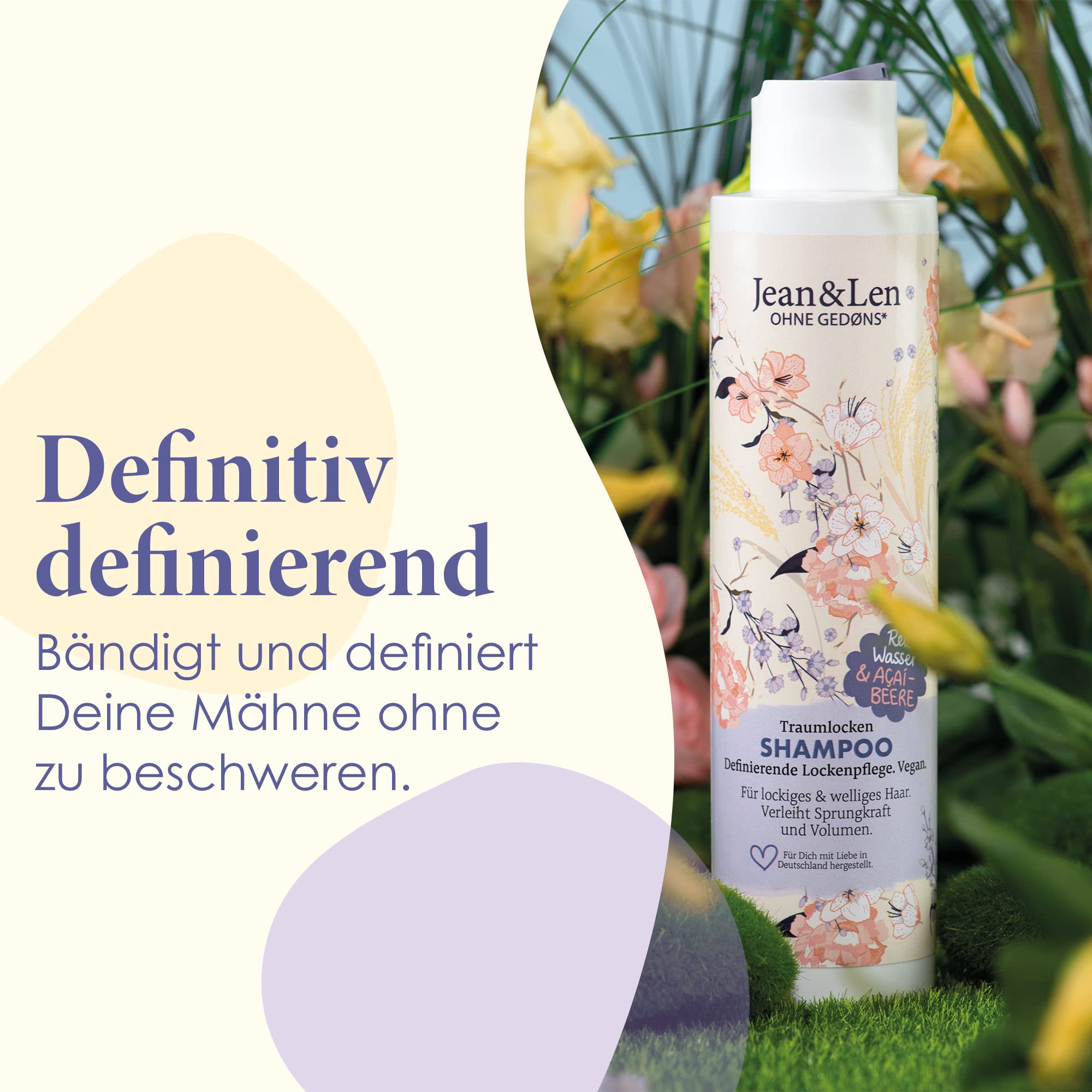Jean & Len Traumlocken Shampoo Reiswasser & Açaibeere, für lockiges & welliges Haar, verleiht Sprungkraft & Volumen, fruchtiger Beeren-Duft, Haarshampoo, ohne Parabene & Silikone, vegan, 300 ml
