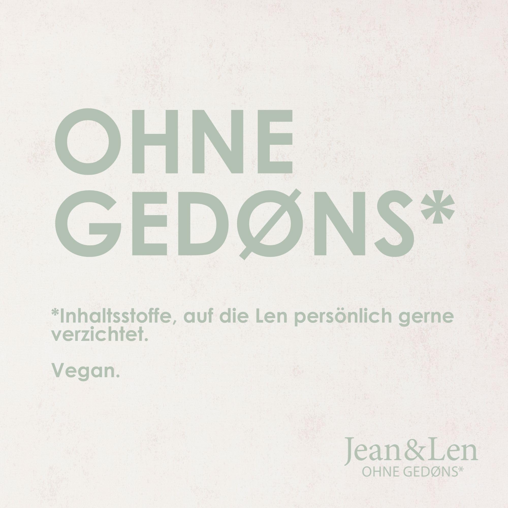 Über Jean & Len: Seit 2013 steht Jean & Len für hochwertige, vegane Pflegeprodukte, die modern gestaltet, nachhaltig produziert und frei von unnötigen Zusatzstoffen sind. Inspiriert vom Motto „Was Dich berührt, wird ein Teil von Dir“, verbindet die Marke Pflege, Duft und Stil in jedem Produkt.
