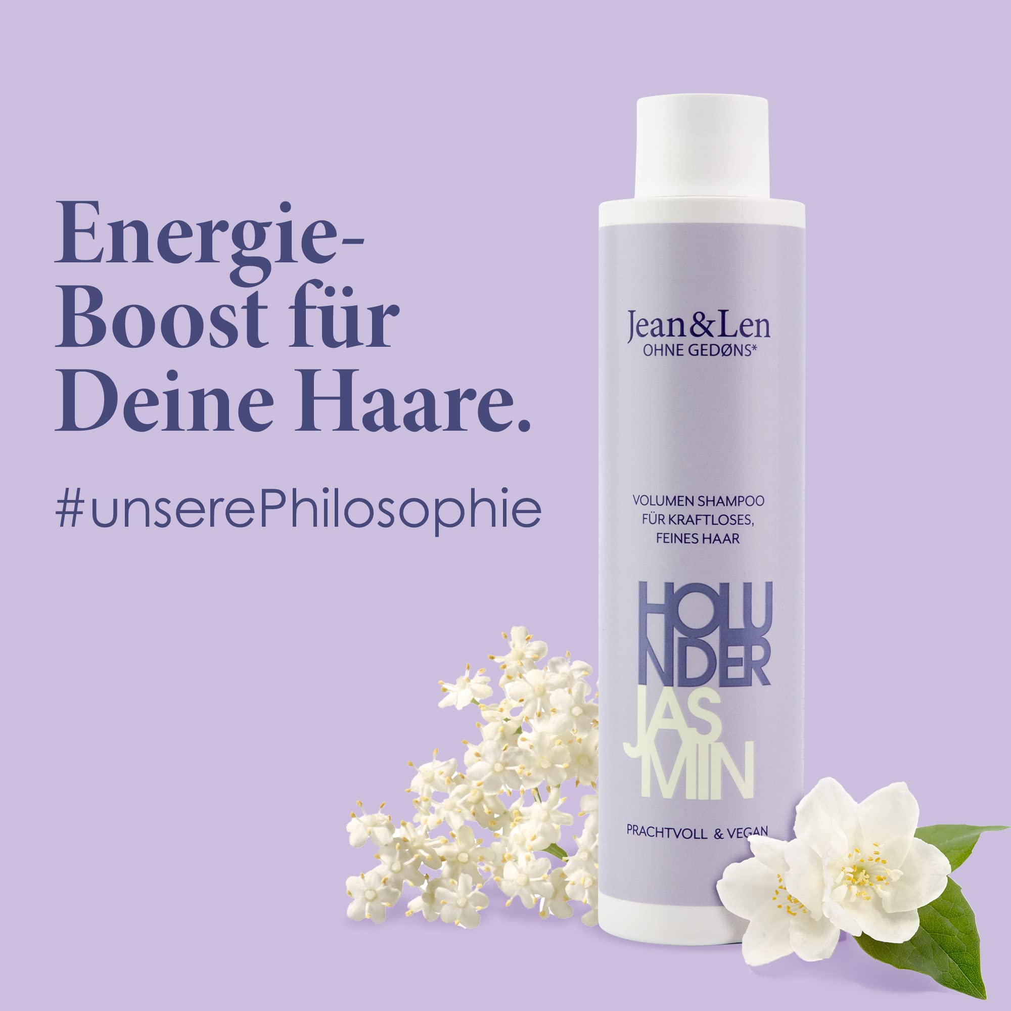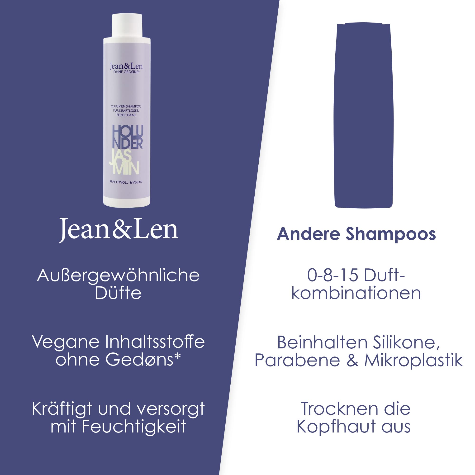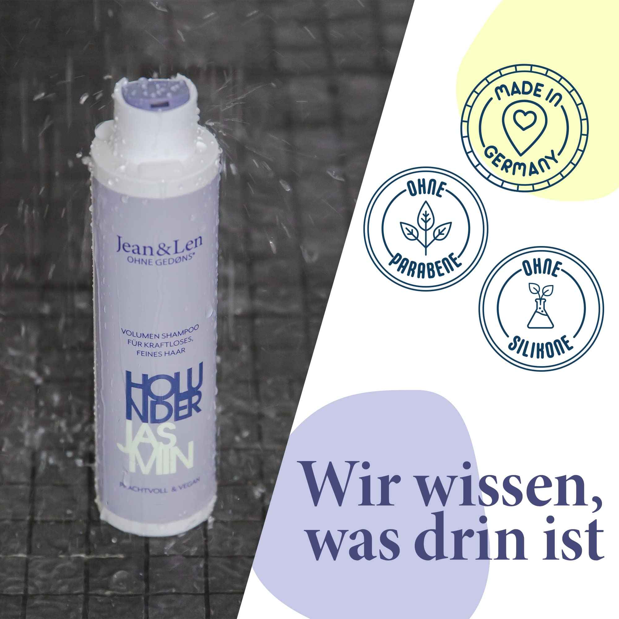 Jean & Len Volumen Shampoo Holunder & Jasmin, für kraftloses und feines Haar, verleiht Volumen, fruchtig-blumiger Duft, ohne Parabene und Silikone, vegan, 300 ml (Packung mit 2)