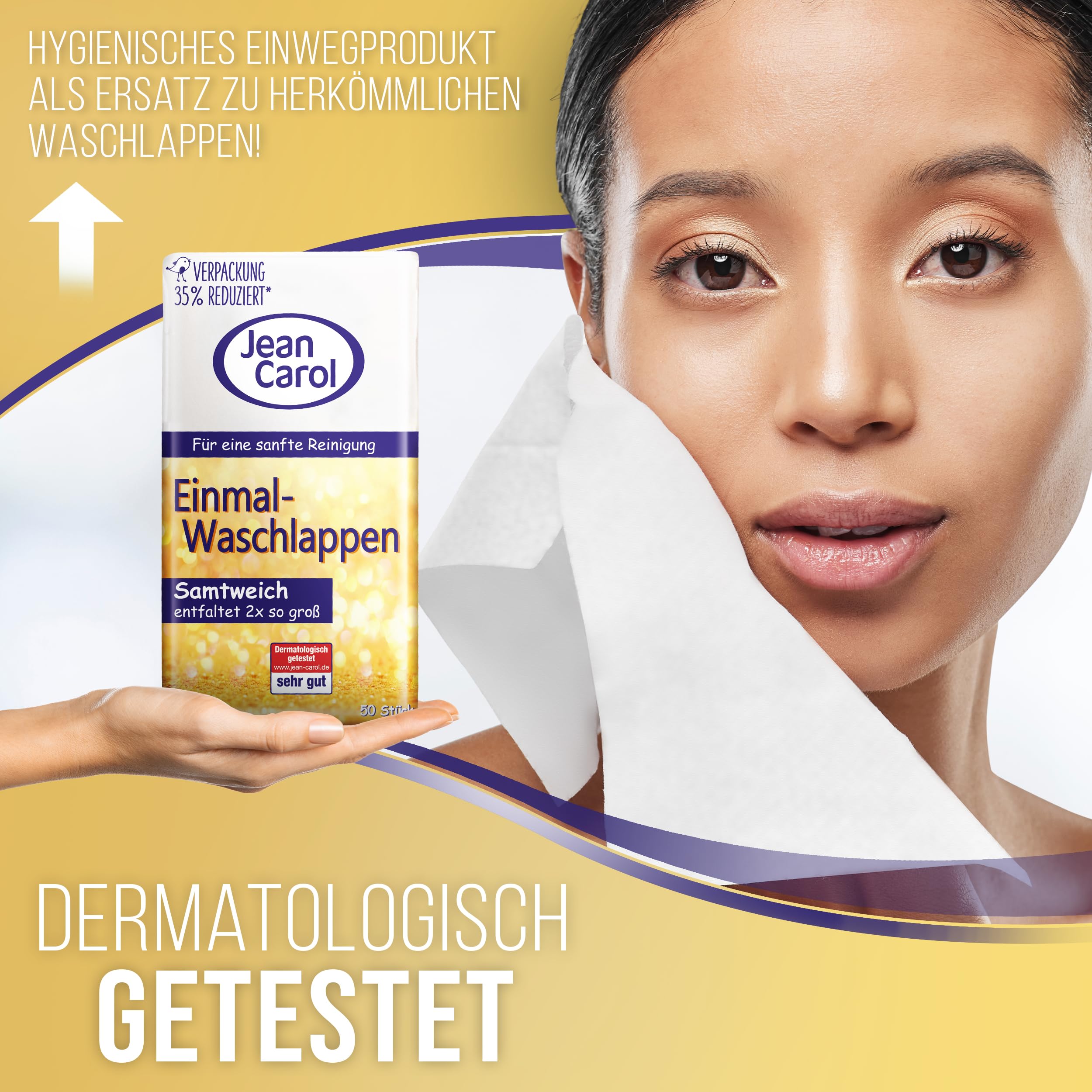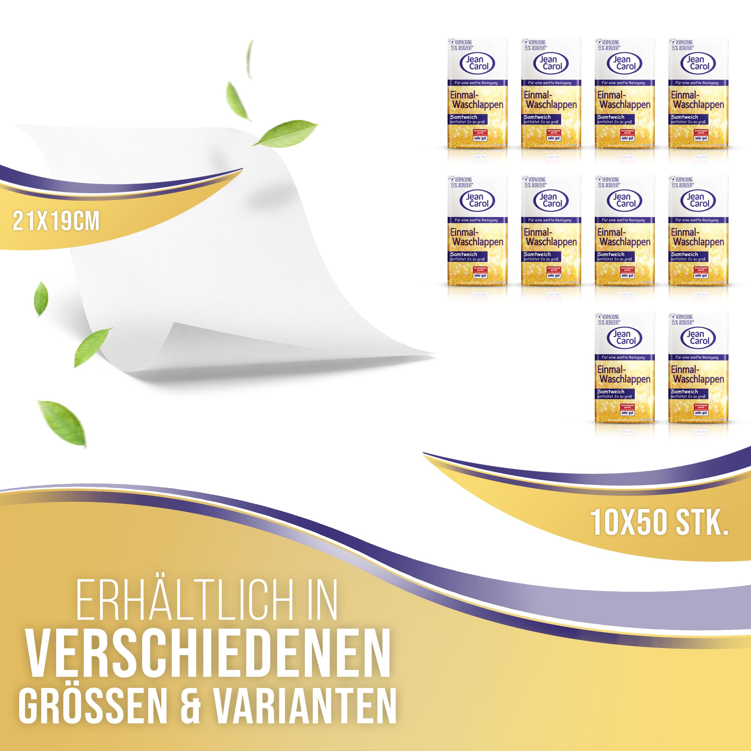 Jean Carol Samtweich Waschlappen – Trockene Pflegetuecher fuer Zuhause & unterwegs (10 x 50 Stueck)