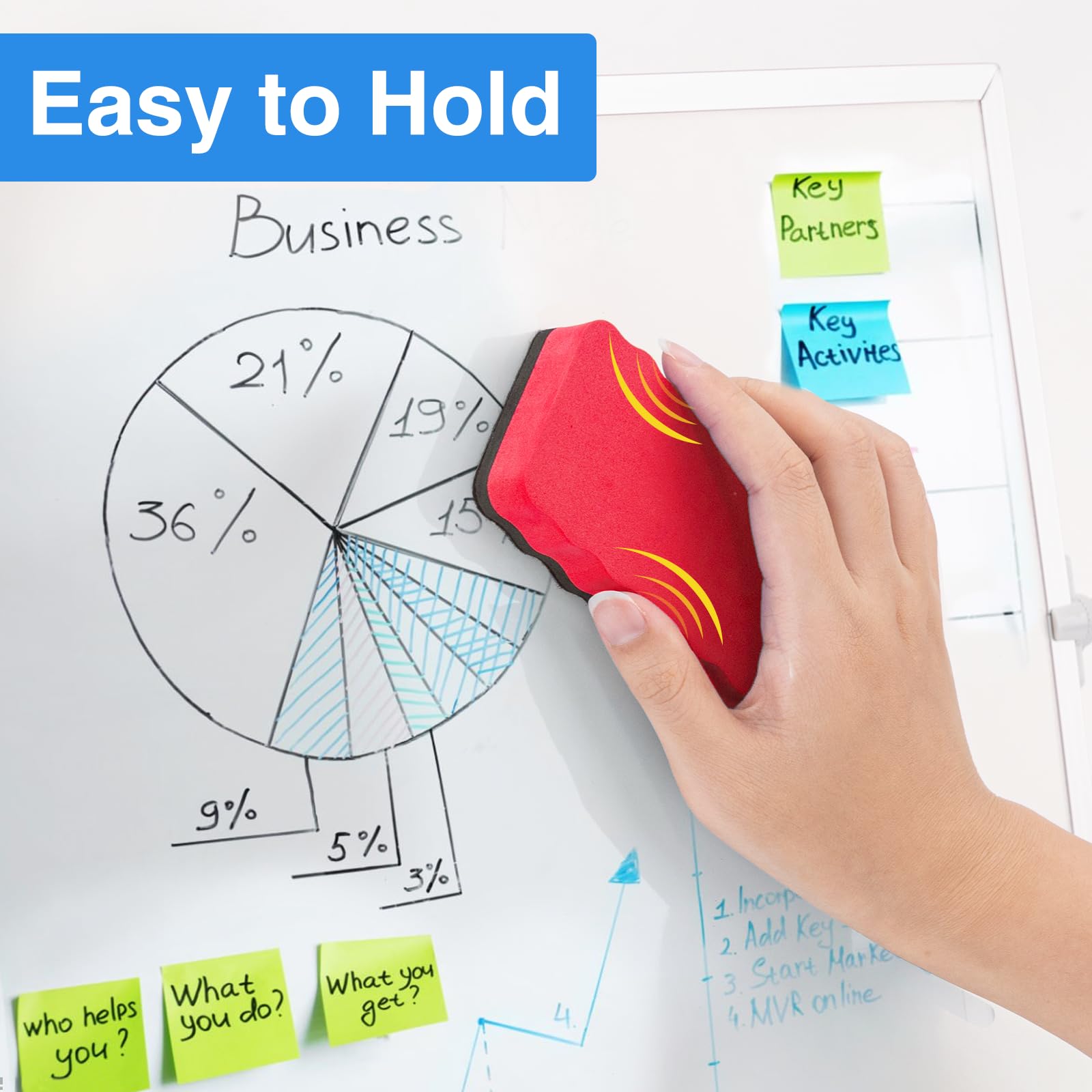 【Sie erhalten】4 Stück Whiteboard Schwamm Magnetisch mit den Massen 10,7 x 5,5 x 2 cm n den Farben Blau, Grün, Rot, Gelb. Dieser Whiteboard Schwamm wurde speziell für die Reinigung von Whiteboards entwickelt und ist ein hervorragendes Reinigungswerkzeug. 【Hochwertige Materialien】Dieser aus EVA-Schaum und einer weichen Mikrofaserbasis gefertigte Whiteboard Radiergummi fühlt sich sanft an, hat eine starke Reinigungskraft und ist langlebig, um sicherzustellen, dass Ihr Whiteboard immer sauber bleibt. 【Ergonomisches Design】Der Whiteboard Radierer hat eine ergonomische Form und ist leicht zu greifen. Gleichzeitig ermöglicht Ihnen das leichte Design des Whiteboard Sponge, ihn problemlos überall hin mitzunehmen, wo Sie ihn benötigen. 【Magnetische Adsorption】Dieser Whiteboard Eraser verfügt über zwei eingebaute Magnete, um sicherzustellen, dass der Dry Erase Erasers fest an der magnetischen Oberfläche haftet, ohne dass Sie befürchten müssen, dass er herunterfällt. 【Mehrere Szenen】Dieser Board Schwamm Magnetisch eignet sich nicht nur für den Einsatz in der Schule, bei der Arbeit und zu Hause, sondern ist auch ein unverzichtbares Zubehör für Whiteboards, Memoboard, Flipcharts, Tafeln und mehr.
