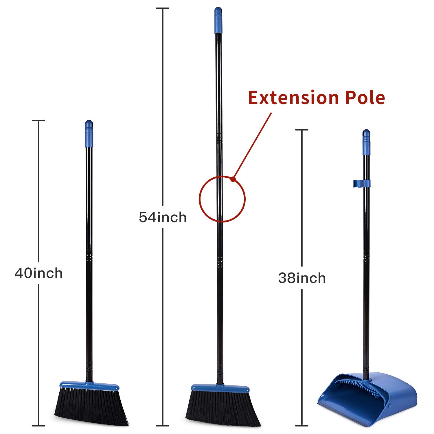 Jekayla Besen und Kehrschaufel Set, Kehrmaschine und Kehrschaufel Combo mit 137cm Langem Ausziehbarem Griff für die Haushaltsreinigung, Blau