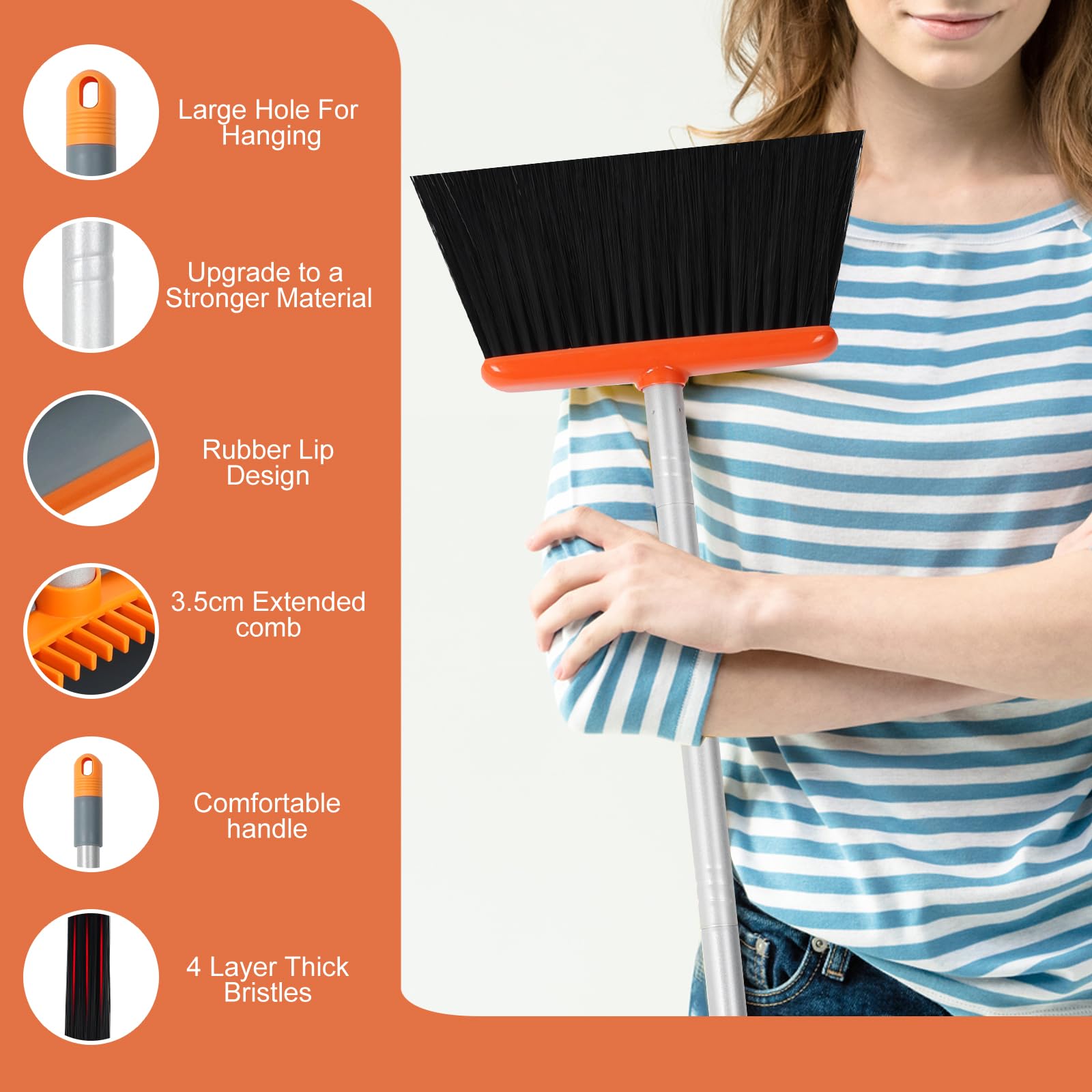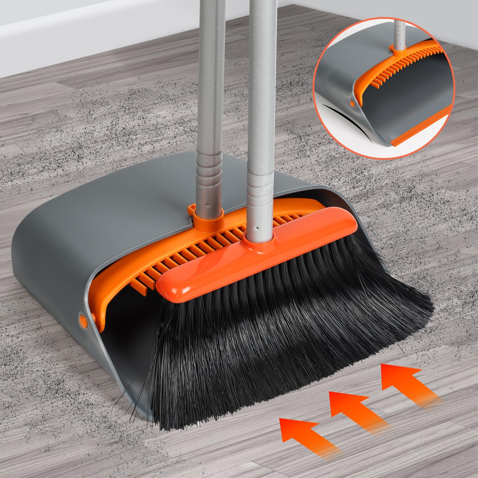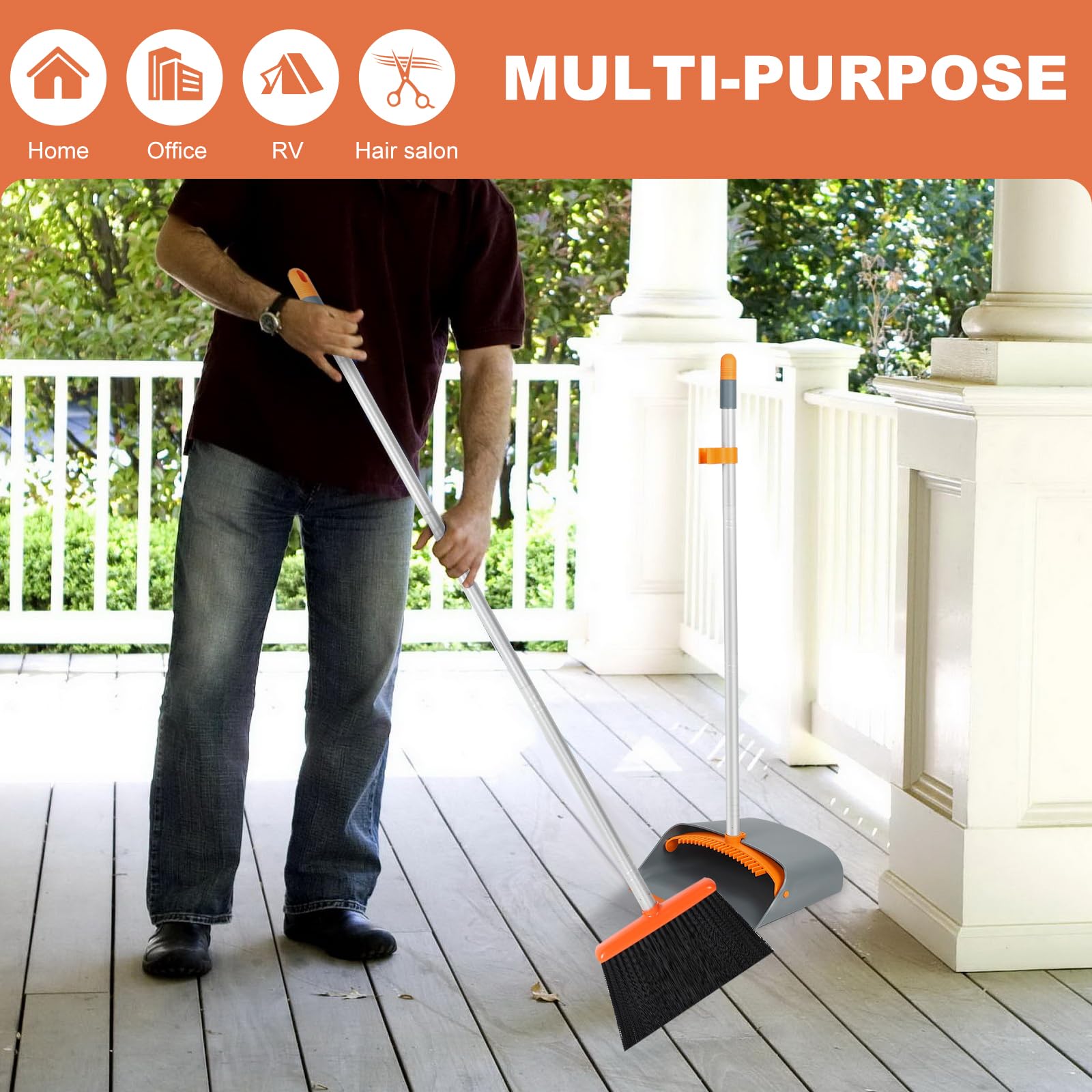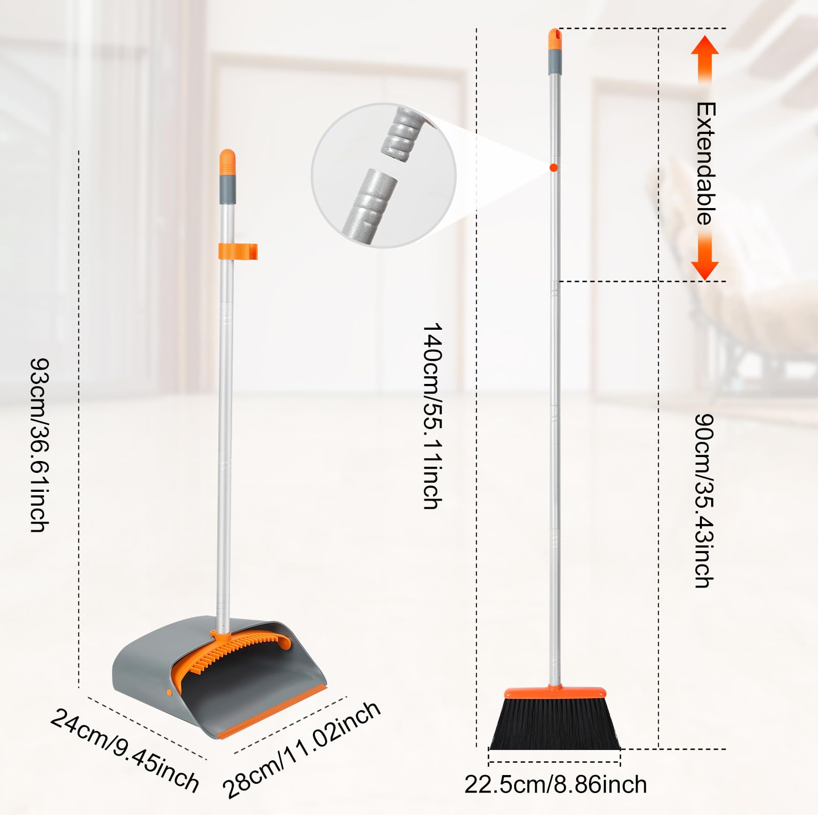 Jekayla Besen und Kehrschaufel Set, Kehrmaschine und Kehrschaufel Combo mit 137cm Langem Ausziehbarem Griff für die Haushaltsreinigung, Orange