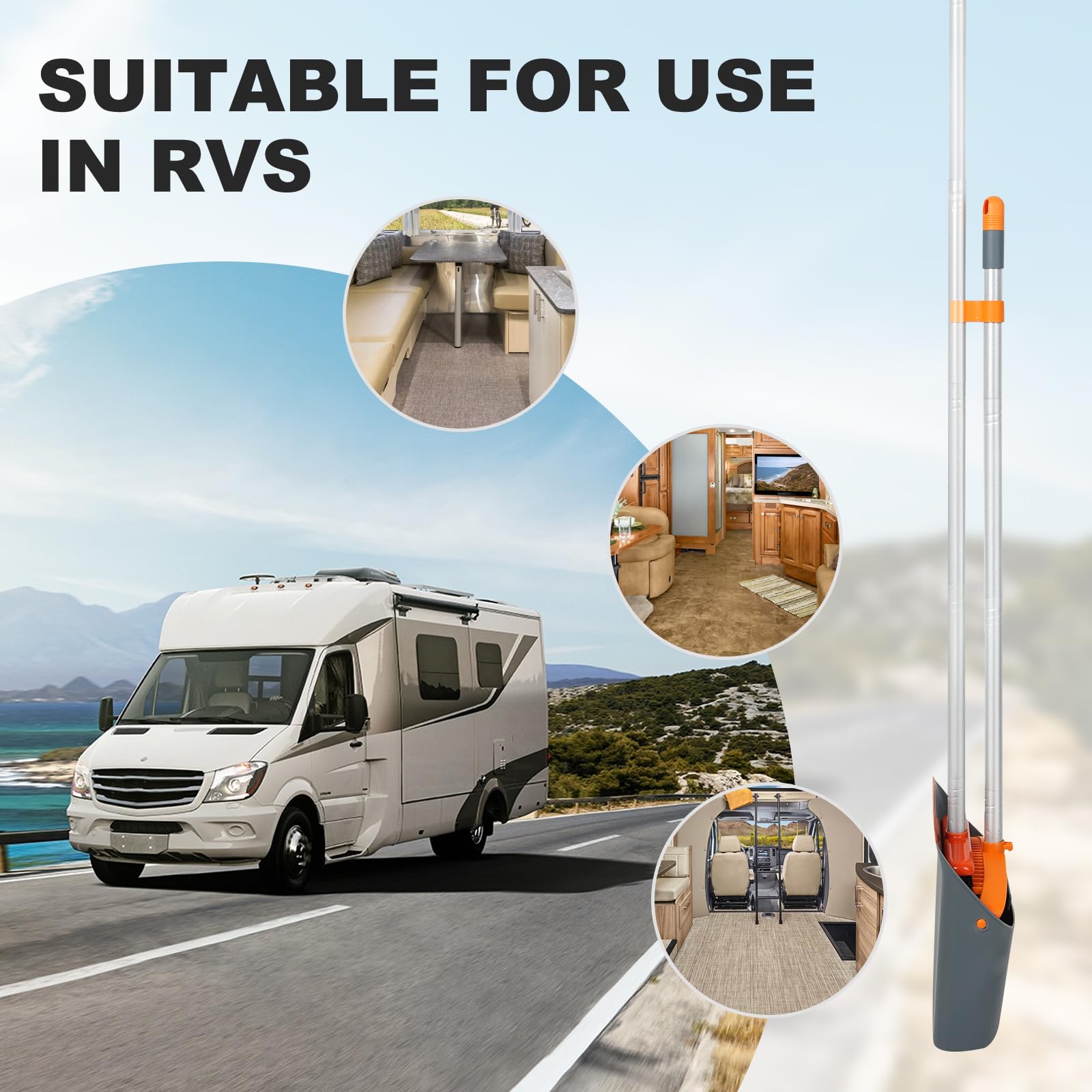 • Der leichte Mast aus lackiertem Aluminium kann auf eine Länge von 137 cm verlängert werden, sodass Sie aufrecht stehen und bequem und einfach fegen können. Die Besen- und Kehrschaufellänge kann ebenfalls eingestellt werden.