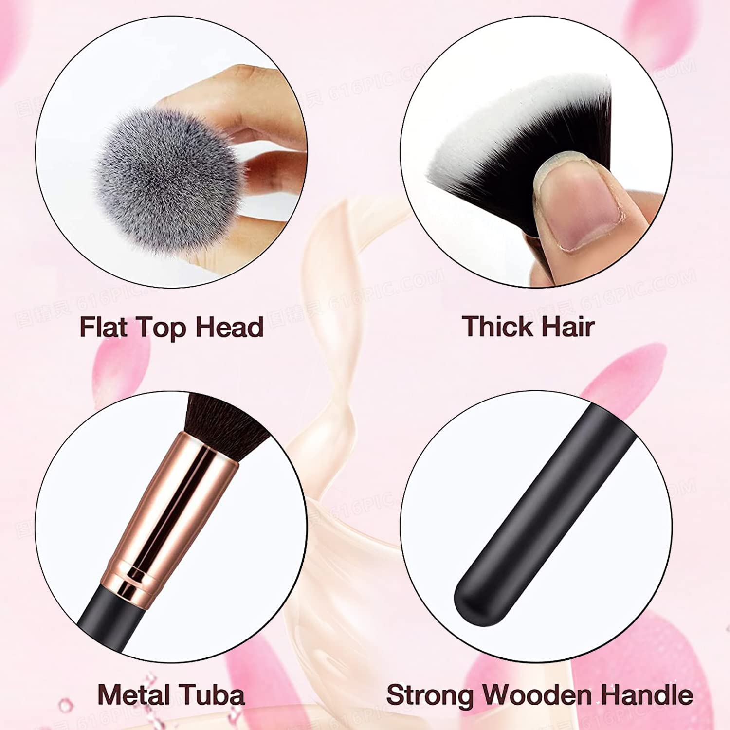 JeoPoom Flacher Foundationpinsel – Make-up-Pinsel zum Polieren & Verblenden