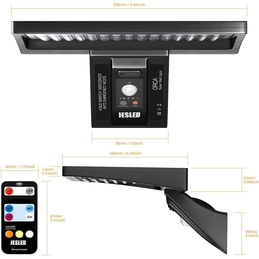 JESLED Solarlampen für Aussen mit Bewegungsmelder, 5200 mAh Solarleuchten für Aussen 104 LED Solar Lampe Outdoor Ideal für Terrasse, Veranda, Garage, Hof, Strassen, IP65 Wasserdicht, 2 Stück