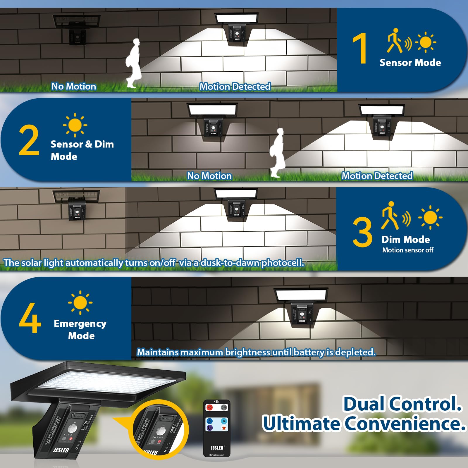 JESLED Solarlampen für Aussen, 104 LED 8w 6000k, Superhelle Solarleuchte mit Bewegungsmelder Sicherheitswandleuchte 4 Modi Wasserdichte Wandleuchte Garten.Batterie austauschbar,2 Stück