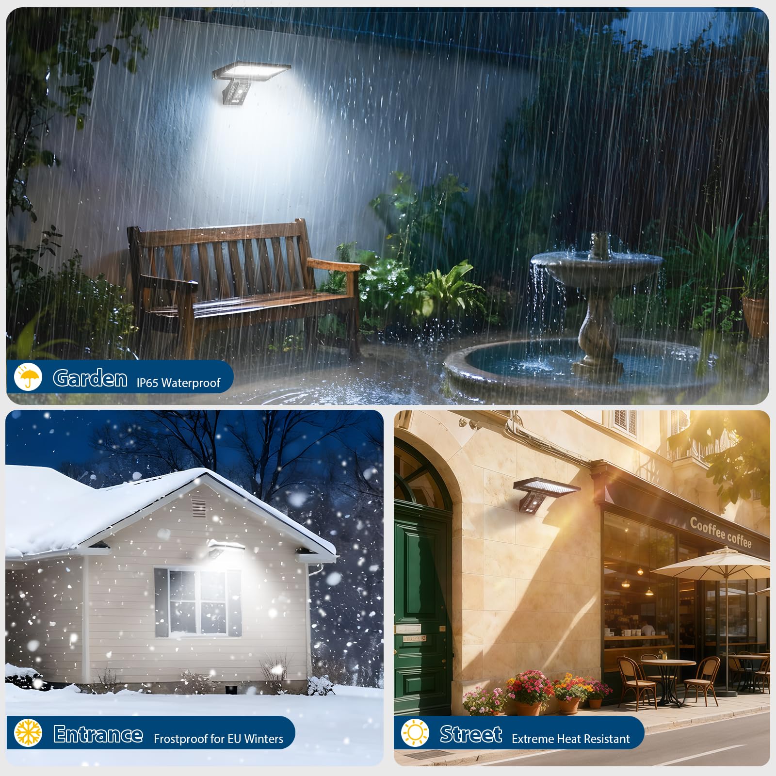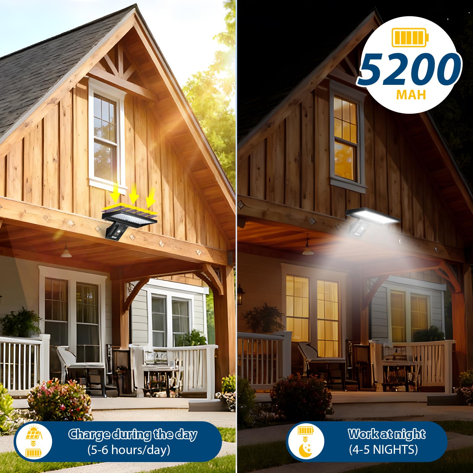 - 【360° Superhelle Beleuchtung mit 104 LED-Chips】Hochleistungs-LEDs mit Energiemanagement-Chip liefern 30% helleres Licht als Standard-Solarleuchten. Durch 2600mAh-Industrieakku und hocheffizientes Solarpanel garantiert die Lampe selbst bei Regenwetter 4-5 Nächte Dauerbetrieb – perfekt für Haustür, Gartenwege und Garageneinfahrten.