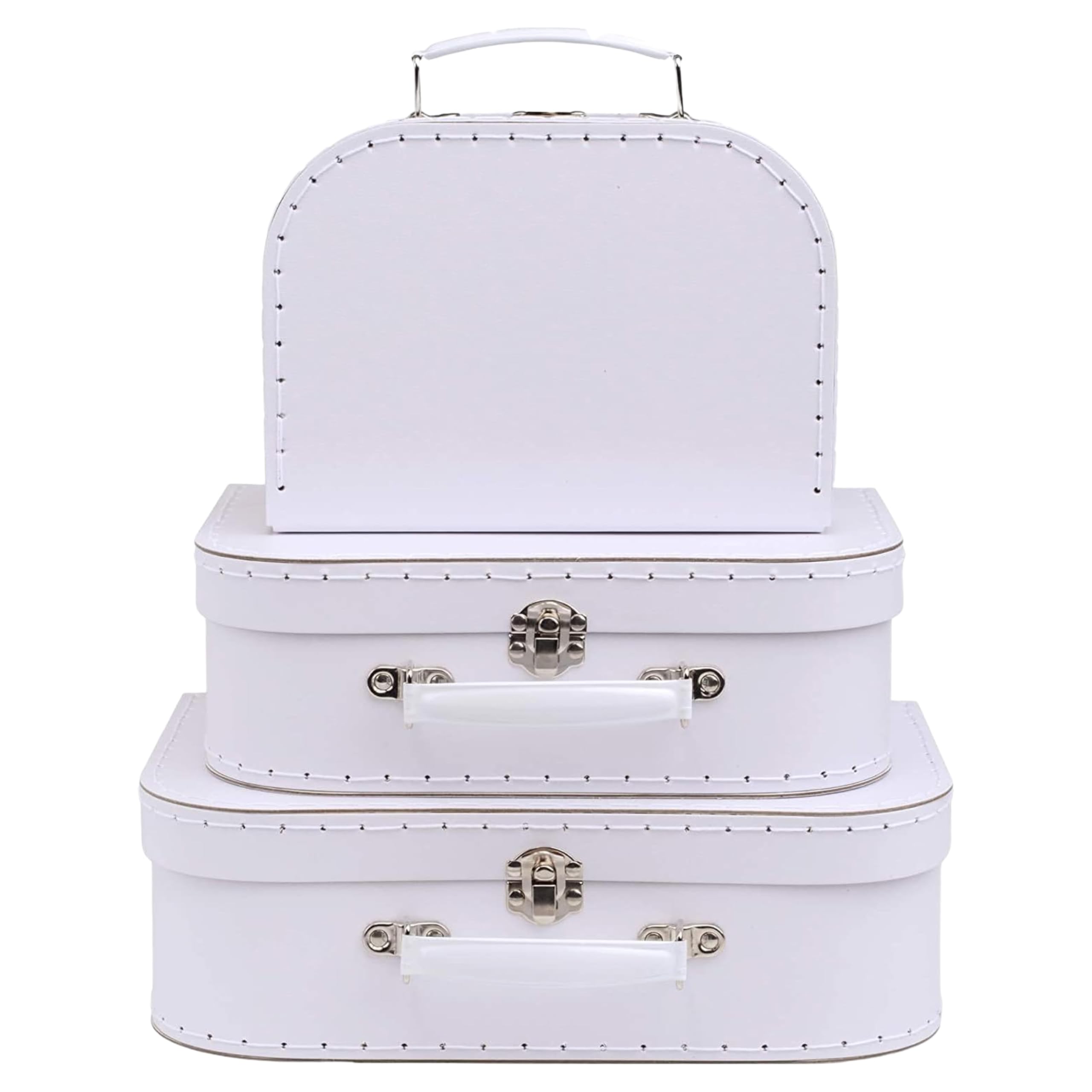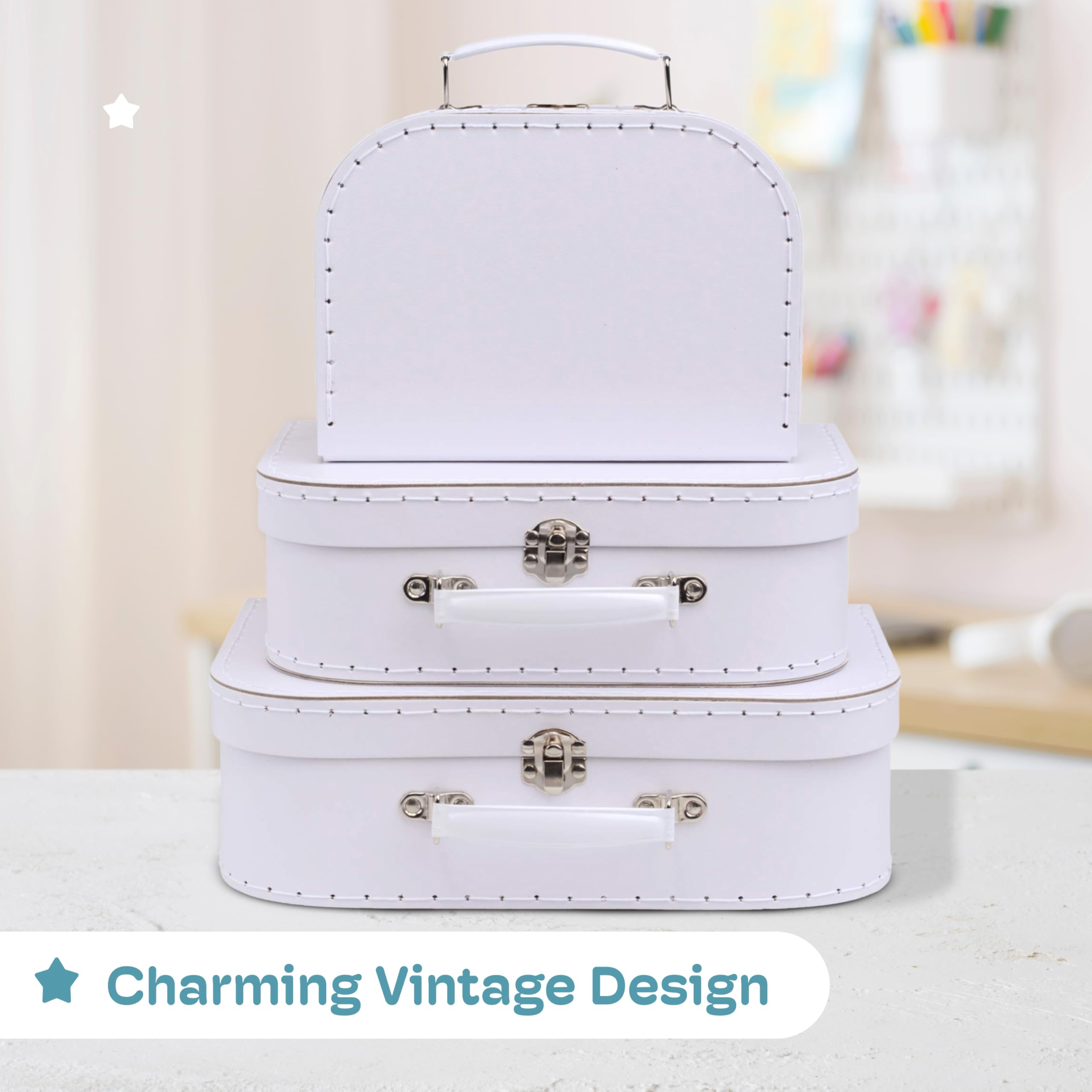 Jewelkeeper Koffer aus Karton, Vintage-Design, dekorative Aufbewahrungsbox, Aufbewahrungslösung, Dekor für Geburtstag und Hochzeit, Weiss, 3 Stück