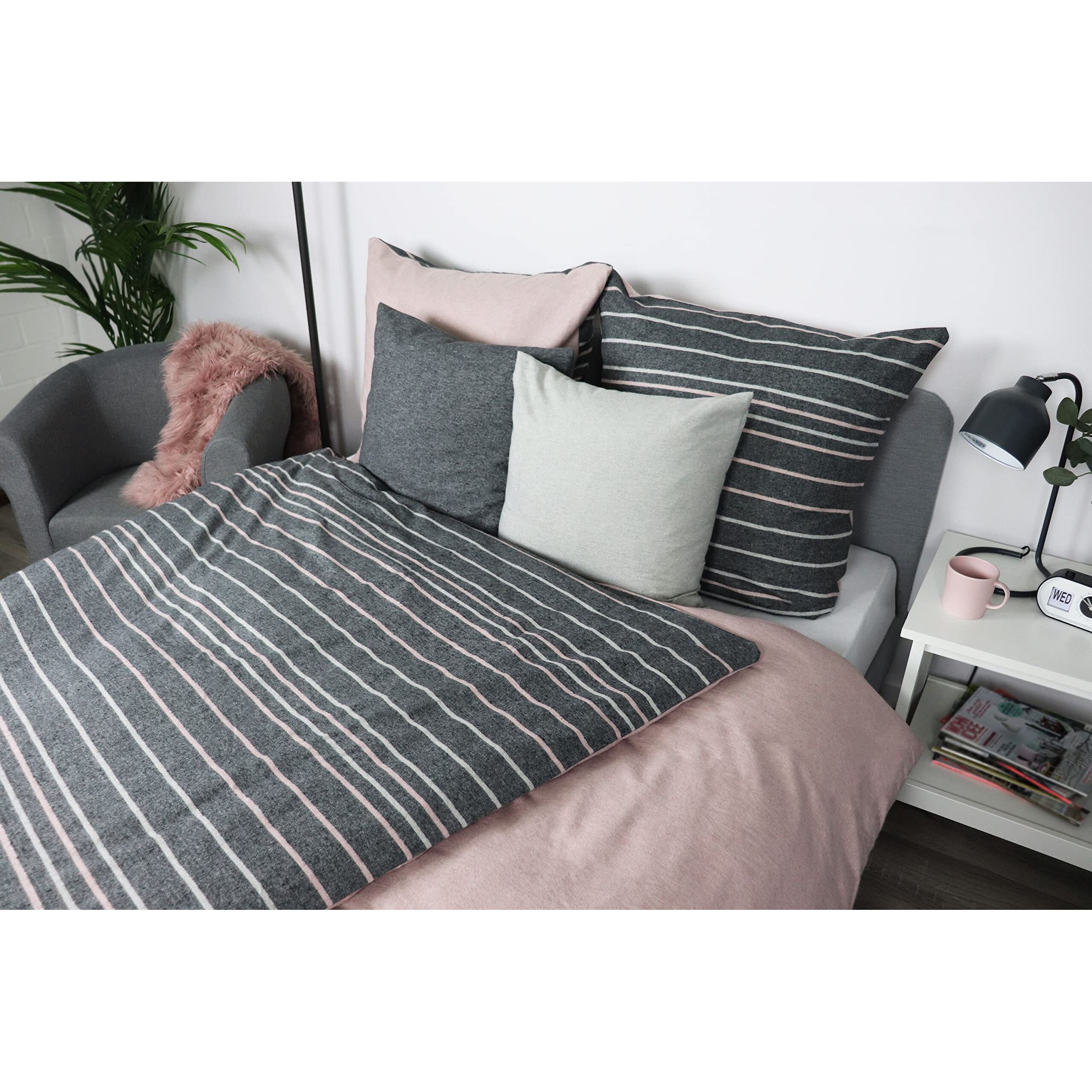 jilda-tex Biber Bettwäsche Made IN Germany Melange 135x200 cm + 80x80 cm 100% Baumwolle Feinbiberbettwäsche Edel-Flanell Verschiedene Grössen/Farben (Colored Stripes - Anthrazit, 200 x 200 cm)