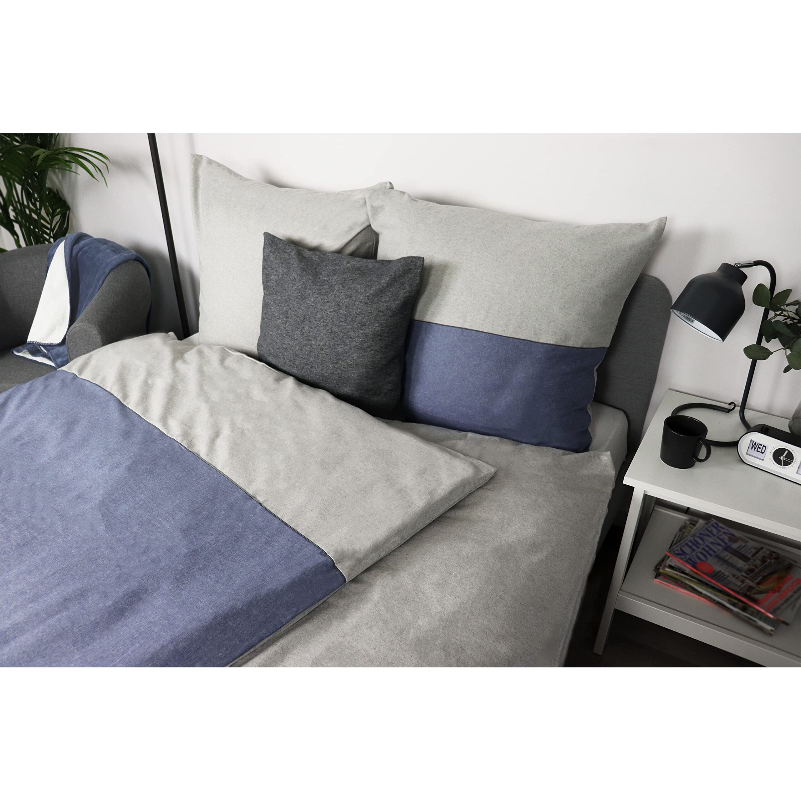jilda-tex Biber Bettwäsche Made IN Germany Melange 135x200 cm + 80x80 cm 100% Baumwolle Feinbiberbettwäsche Edel-Flanell Verschiedene Grössen/Farben (Jeansblau/Streifen Hellgrau, 135 x 200 cm)