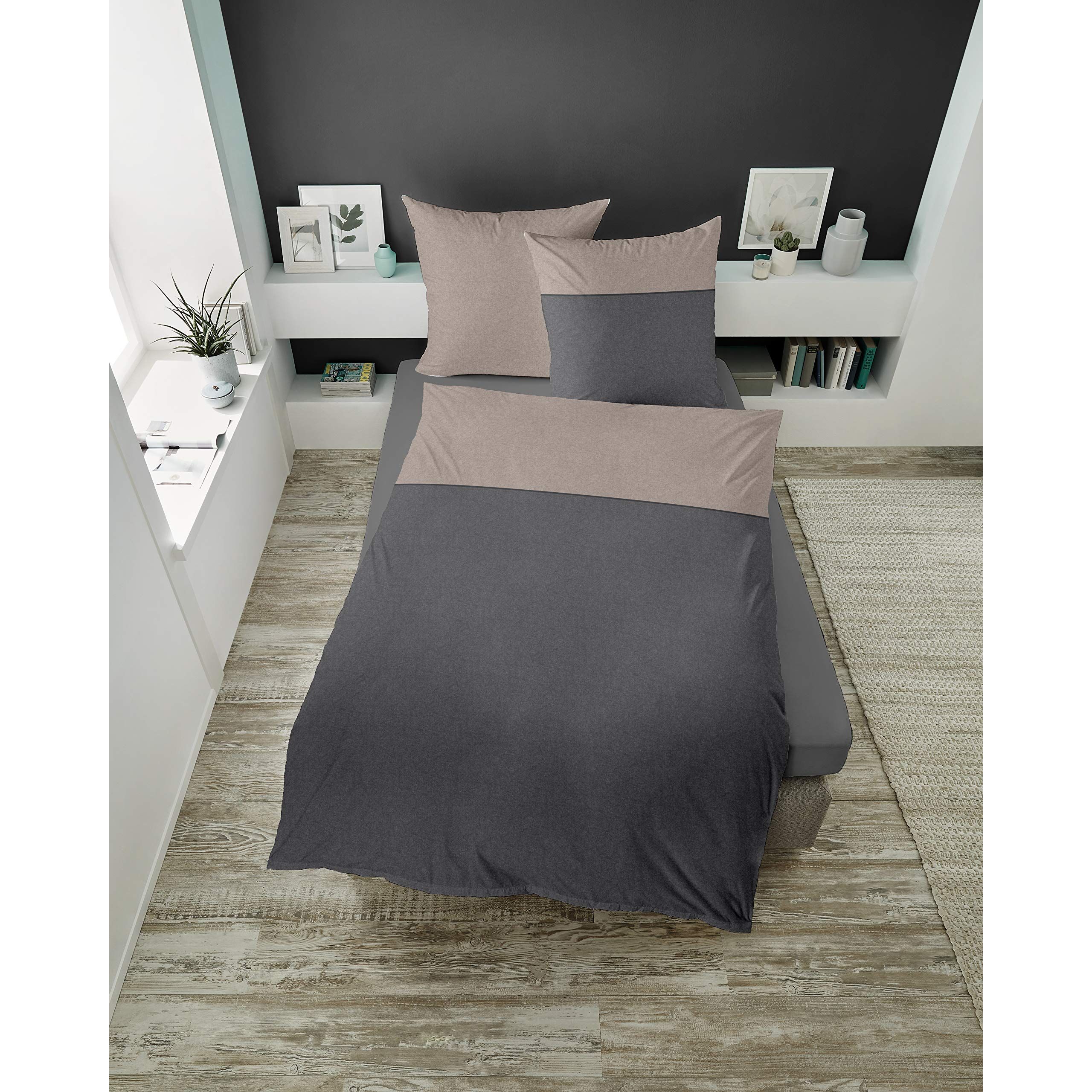 jilda-tex Biber Bettwäsche Made IN Germany Melange 135x200 cm + 80x80 cm 100% Baumwolle Feinbiberbettwäsche Edel-Flanell Verschiedene Grössen/Farben (Dunkelgrau/Streifen Beige, 200 x 200 cm)