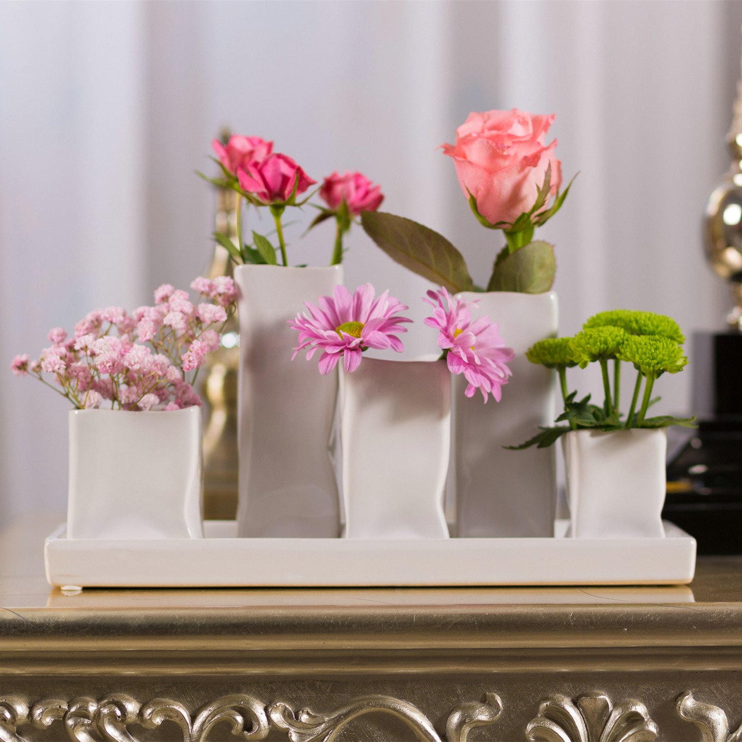 Entdecken Sie das exquisite Jinfa Keramik Set, das aus 5 handgefertigten kleinen weisse Keramikvasen besteht. Dieses Vase Weiss Set ist die perfekte Wahl für diejenigen, die ihr Zuhause mit Stil und Raffinesse dekorieren möchten. Mit einem modernen und ansprechenden Design fügt sich dieses Vasen Set nahtlos in jede Wohnzimmer- oder Küchendekoration ein. Das Jinfa Keramik Set ist nicht nur eine hervorragende Wahl für die Dekoration, sondern auch ein ideales Geschenk für Freunde und Familie. Das Set hat eine Gesamtlänge von 29,5 cm, eine Breite von 11 cm und eine Höhe von 15,5 cm, wodurch es sich perfekt für kleine Vasen Tischdeko eignet. Die Vasen sind an der Basis befestigt und nicht abnehmbar, was für zusätzliche Stabilität sorgt. Handgefertigt aus hochwertiger Keramik, können kleine Glasurfehler auftreten, die jedem Set seinen einzigartigen Charakter verleihen. Unsere weisse Vase eignet sich hervorragend als Blumenvase modern oder als Vase für Pampasgras. Sie ist auch ideal als Vase für Lego Blumen, was sie zu einer vielseitigen Ergänzung für jede Boho Deko oder moderne Wohnzimmer Deko macht. Platzieren Sie sie als Deko Wohnzimmer, Deko Schlafzimmer oder sogar als Badezimmer Deko, um jedem Raum eine frische und ästhetische Note zu verleihen. Die Jinfa Vasen Klein Tischdeko bietet unbegrenzte Möglichkeiten für Ihre Dekorationsideen. Ob als Wohnzimmer Deko modern oder als Schlafzimmer Deko – diese Vasen Deko lässt keine Wünsche offen. Sie können sie auch als Dekoration für eine Boho-Ästhetik oder als Bad Deko nutzen, um eine entspannende Atmosphäre zu schaffen. Sollte ein Problem mit Ihrem Keramik Set auftreten, zögern Sie bitte nicht, uns sofort zu kontaktieren. Wir sind bestrebt, Ihnen eine optimale Lösung anzubieten.