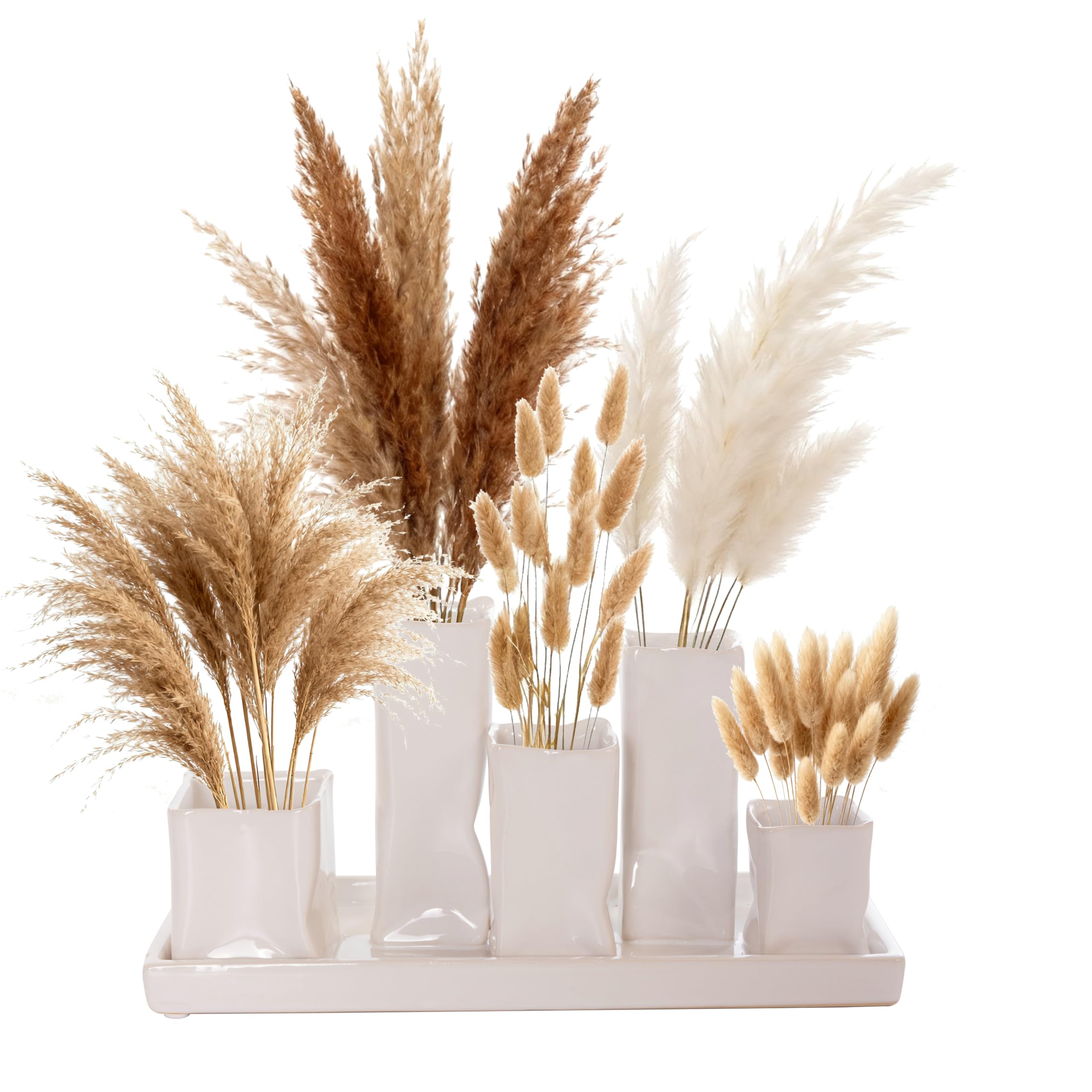 Jinfa Handgefertigte kleine Keramik Deko Blumenvasen Set aus 5 Vasen – ideal für Pampasgras, Trockenblumen, Bunny Tails und Boho Dekoration