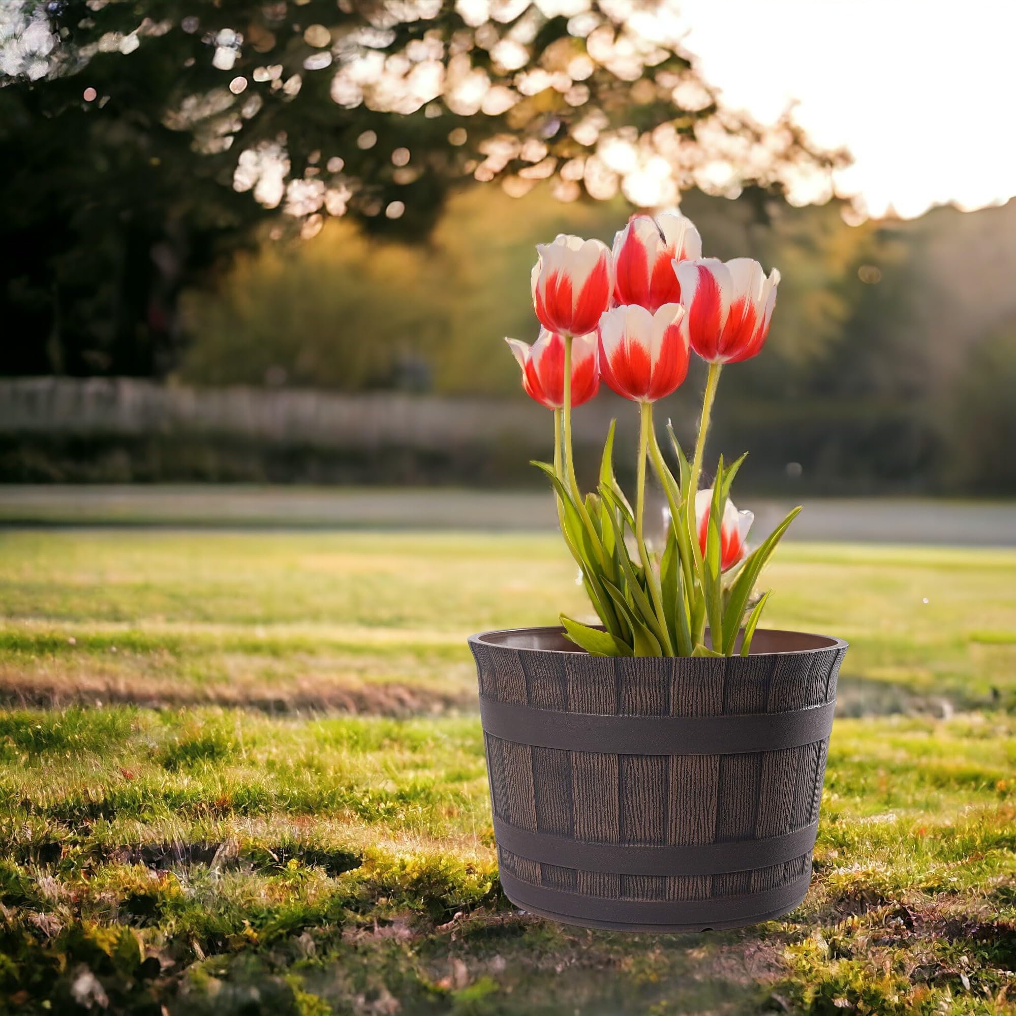 Jinfa Pflanzkübel Garten Zubehör – Wetterfest – Kunststoff Barrique Ø 36 cm Kastanie