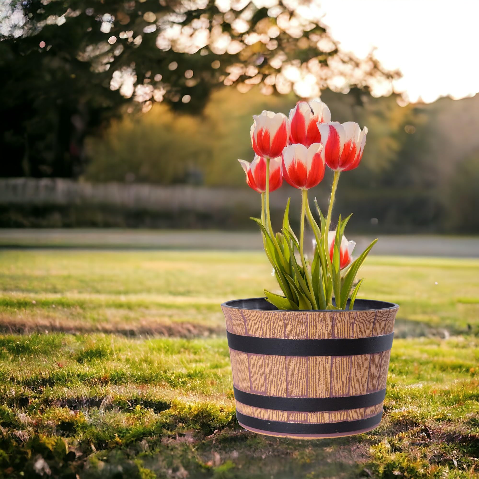 ????Jinfa Pflanzgefäss im Eichenfass-Stil, perfekt für Terrassen und Balkone.Regentonne weinfass kunststoff weinfass miniteich pflanzkübel aussen.Das schlichte, klassische Design ermöglicht eine Vielzahl von Verwendungsmöglichkeiten und der hochwertige Kunststoff macht es langlebig im Aussen- und Innenbereich.