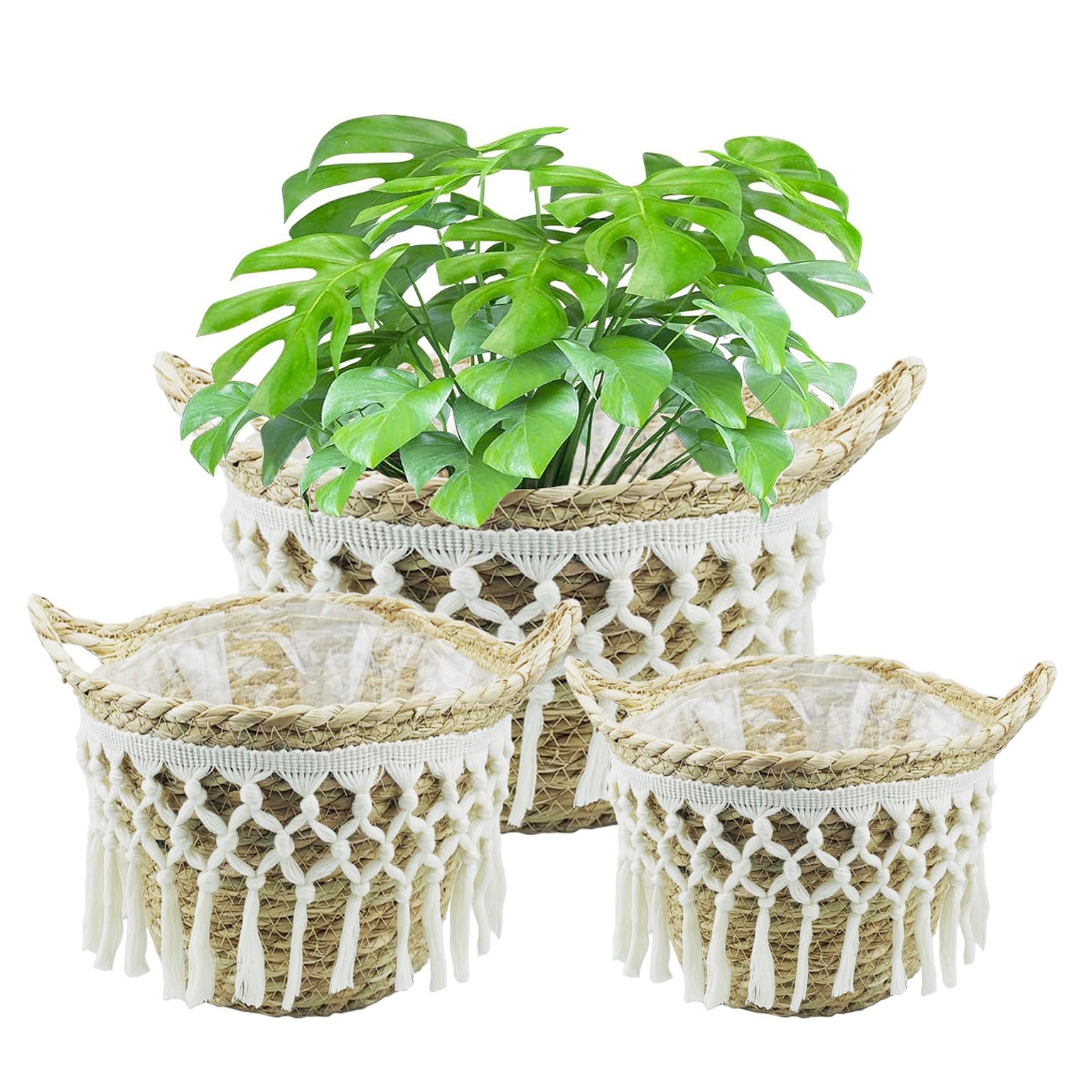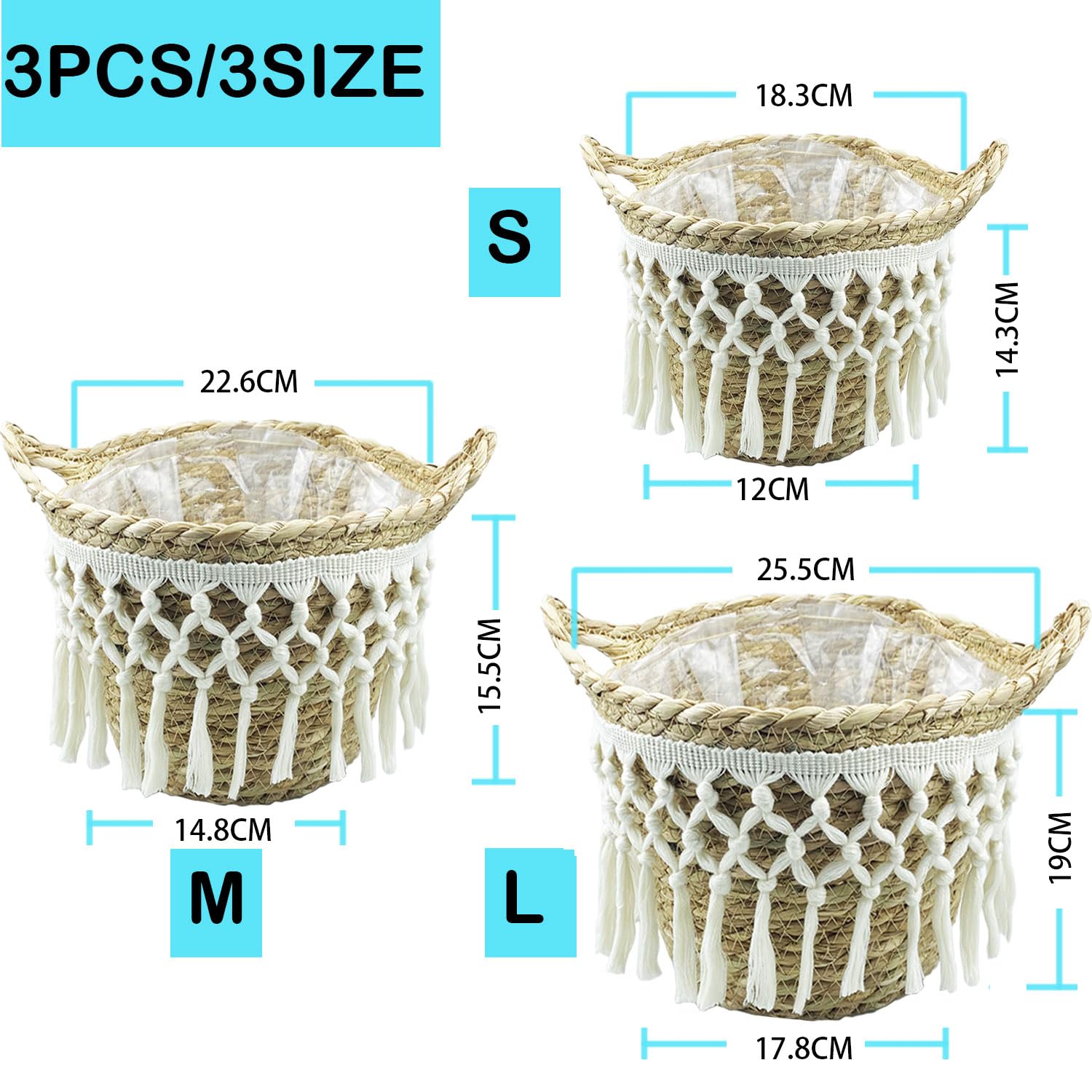- 【Wasserdichtes Futter】Ausgestattet mit einer wasserdichten Kunststofffolie im Innenbereich, um sicherzustellen, dass Erde und Wasser nicht auslaufen, können Sie Ihre Pflanze oder Blume direkt in die Seegraskörbe pflanzen