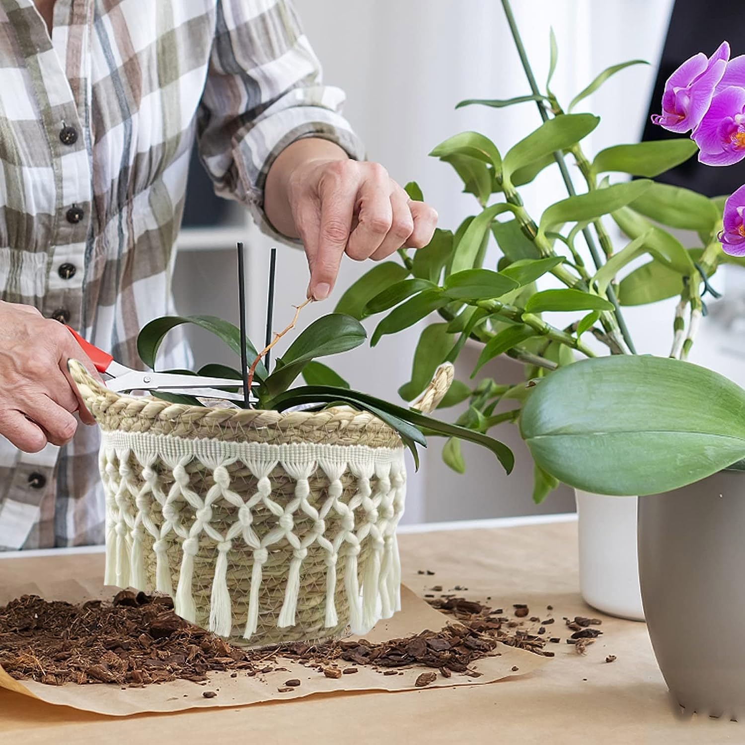 - 【Material】Pflanzkörbe aus natürlichem Seegras, handgefertigtes Produkt, das perfekt umweltfreundlich und sicher für Ihre Pflanze ist, gleichzeitig enthält es keine gefährlichen Inhaltsstoffe für den menschlichen Körper