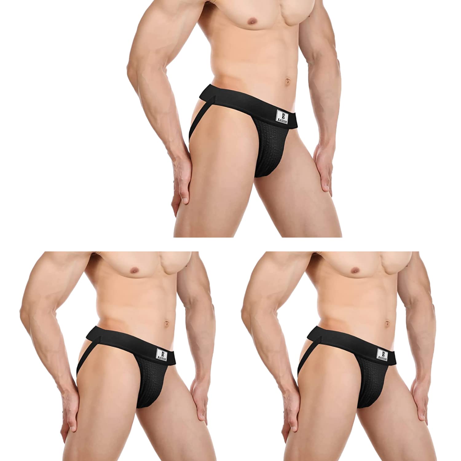 JOCKLAND Herren Jock Strap, breites Band Mesh Männliche Unterwäsche Jockstrap Athletic Supporter für Gym Vasektomie, Schwarz + Schwarz + Schwarz, Large