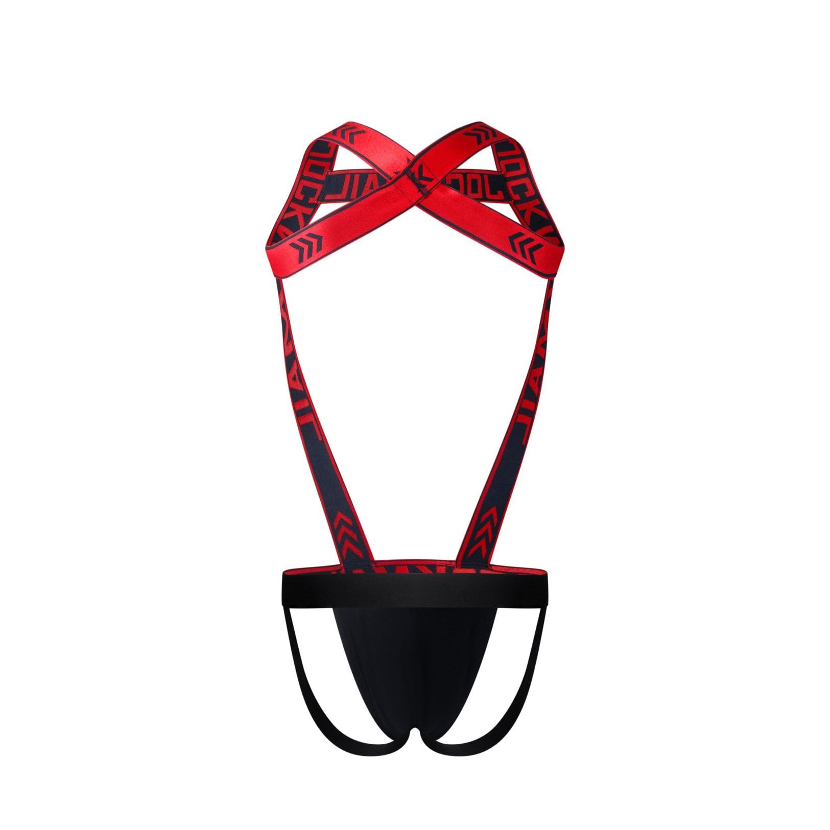 JOCKMAIL Herren-Geschirr mit Jockstrap-Body, sexy Herren-Schultergurte, G-String, Tanga, Schultergurt, Fitness, Einteiler, Rot/Ausflug, einfarbig (Getaway Solids), Large