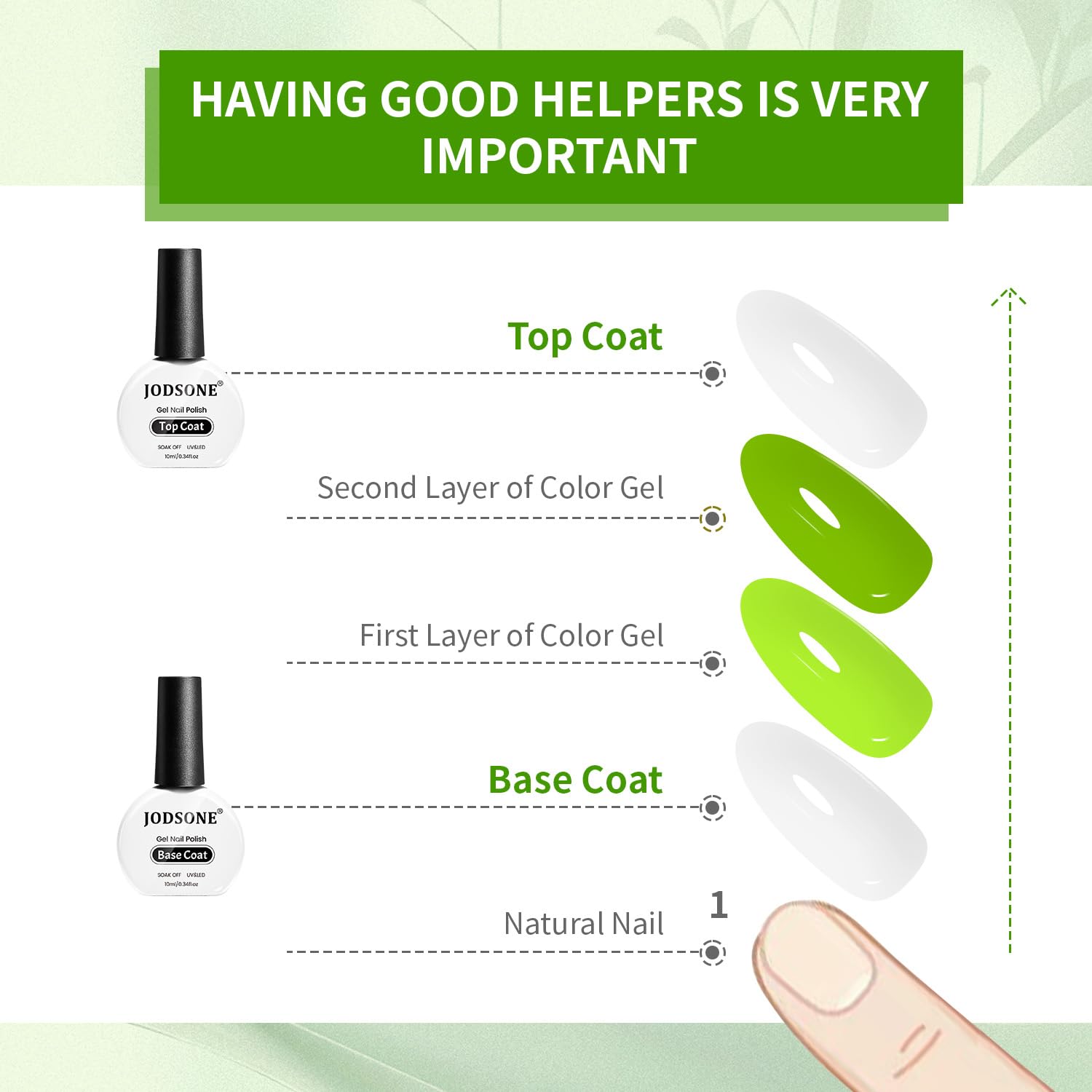 JODSONE UV Gel Base Coat & Top Coat Set 2er Pack No Wipe 2 x 10 ml