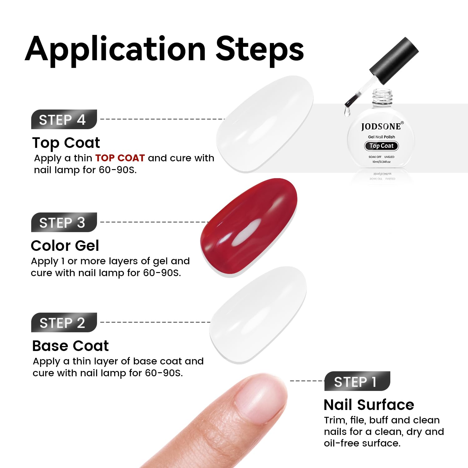 JODSONE 10 ML Top Coat Überlack UV LED Gellack Nagellack Polish, Hochglanz Finish Lang Anhaltend - Nail Art Starter für Maniküre Salon und DIY zu Hause