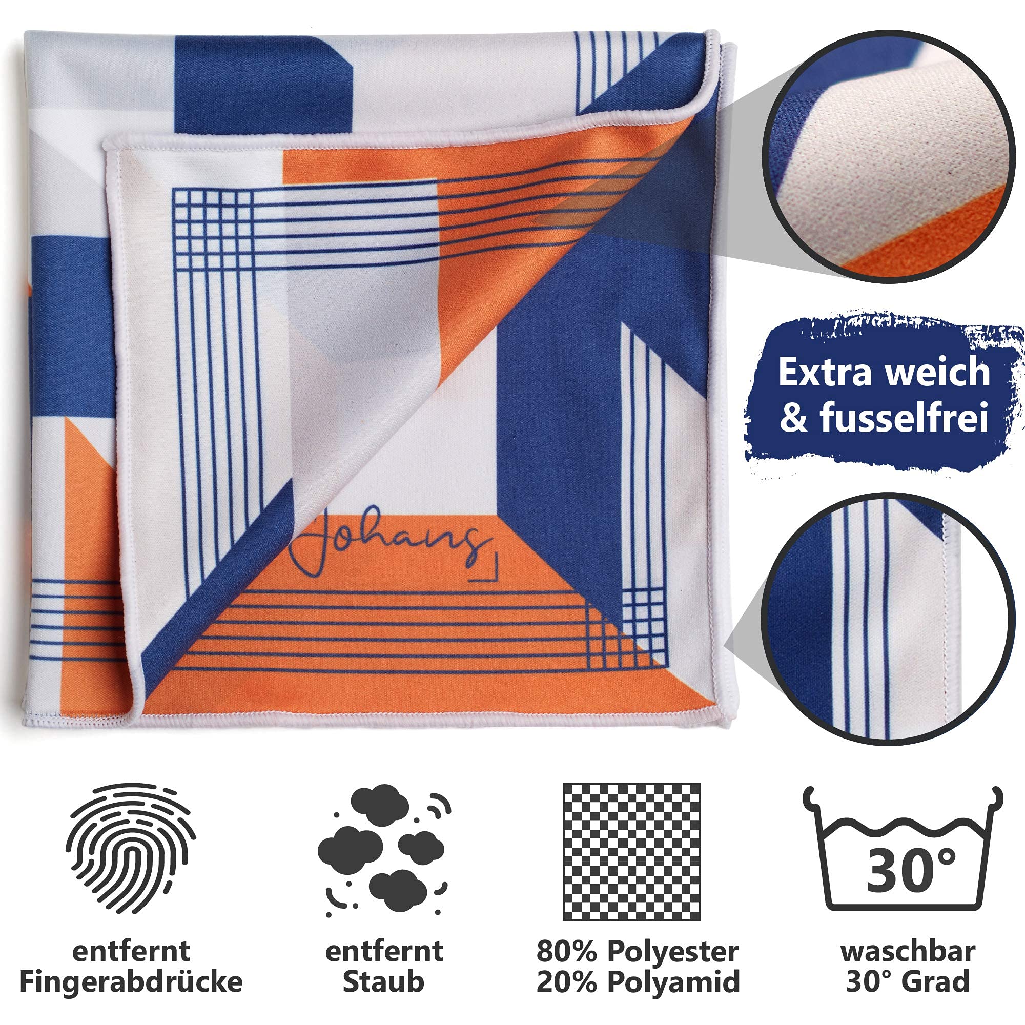 Johans® XXL Mikrofasertuch zur Reinigung von Smartphone, Tablet, Brille, Display, Kamera | Displaytuch, Brillenputztuch, Reinigungstuch | Optikerqualität in 30x30cm (Stages)