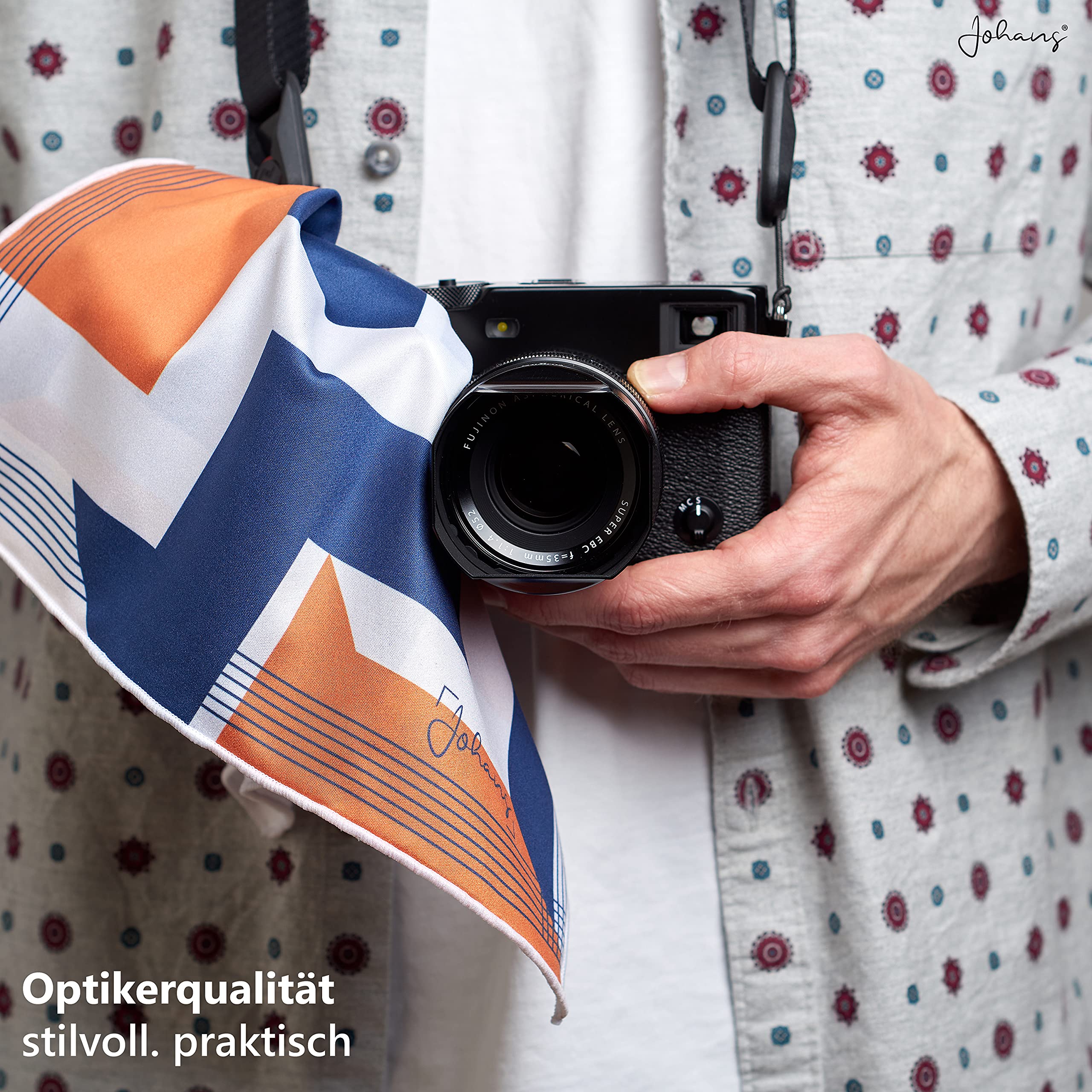 Durch die Grösse (30x30cm) liegt das Johans Tuch besonders gut in der Hand und bietet viel Fläche für eine gründliche Reinigung deiner Brillengläser oder Displays Deiner täglichen Begleiter.
