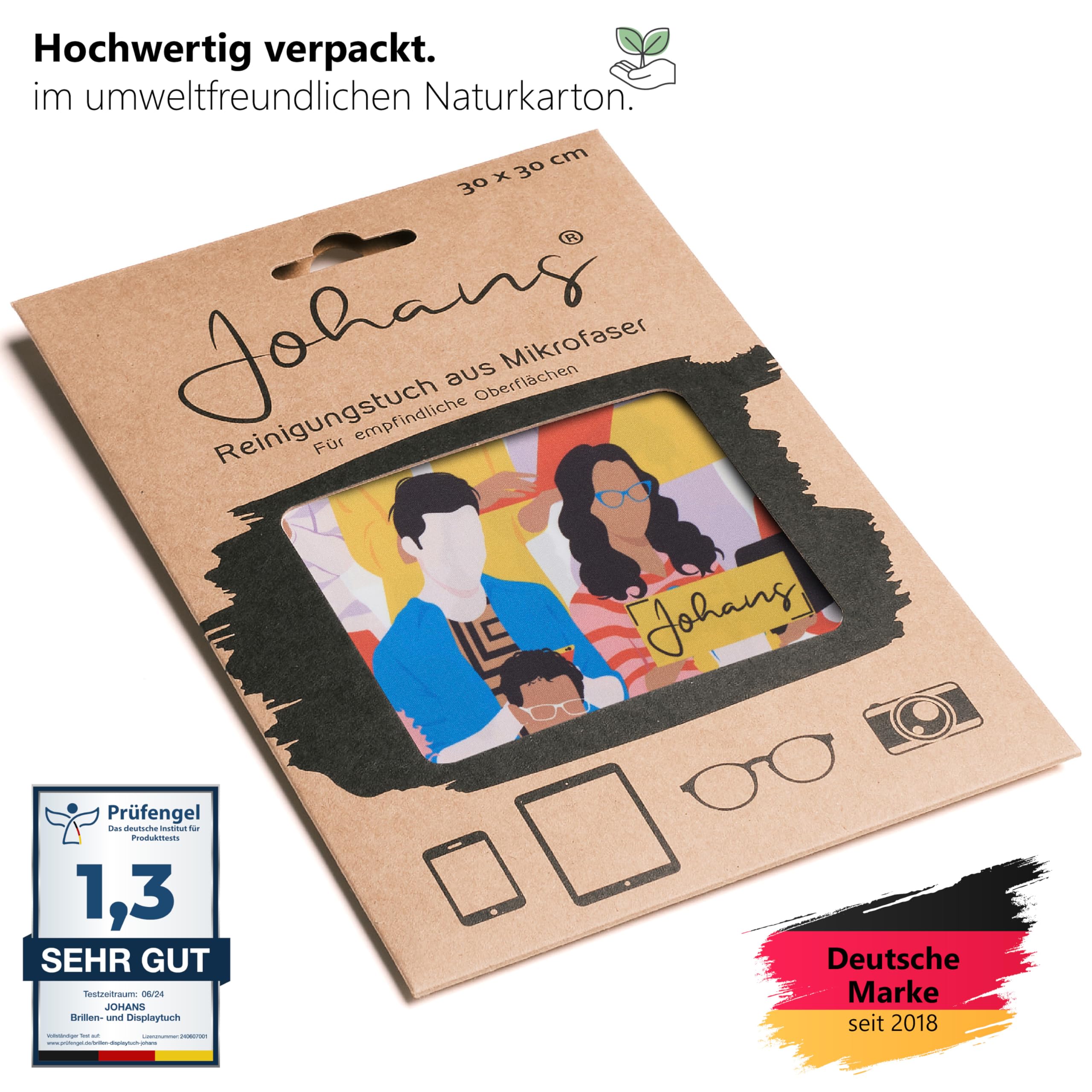 Johans® XXL Mikrofasertuch zur Reinigung von Smartphone, Tablet, Brille, Display, Kamera | Displaytuch, Brillenputztuch, Reinigungstuch | Optikerqualität in 30x30cm (Folks)