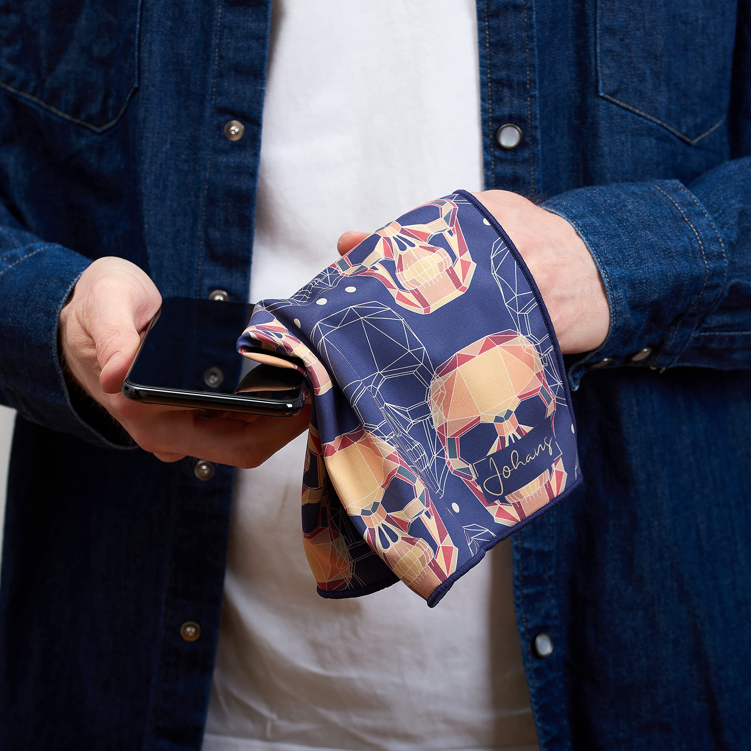 Johans® XXL Mikrofasertuch zur Reinigung von Smartphone, Tablet, Brille, Display, Kamera | Displaytuch, Brillenputztuch, Reinigungstuch | Optikerqualität in 30x30cm (Cranium)