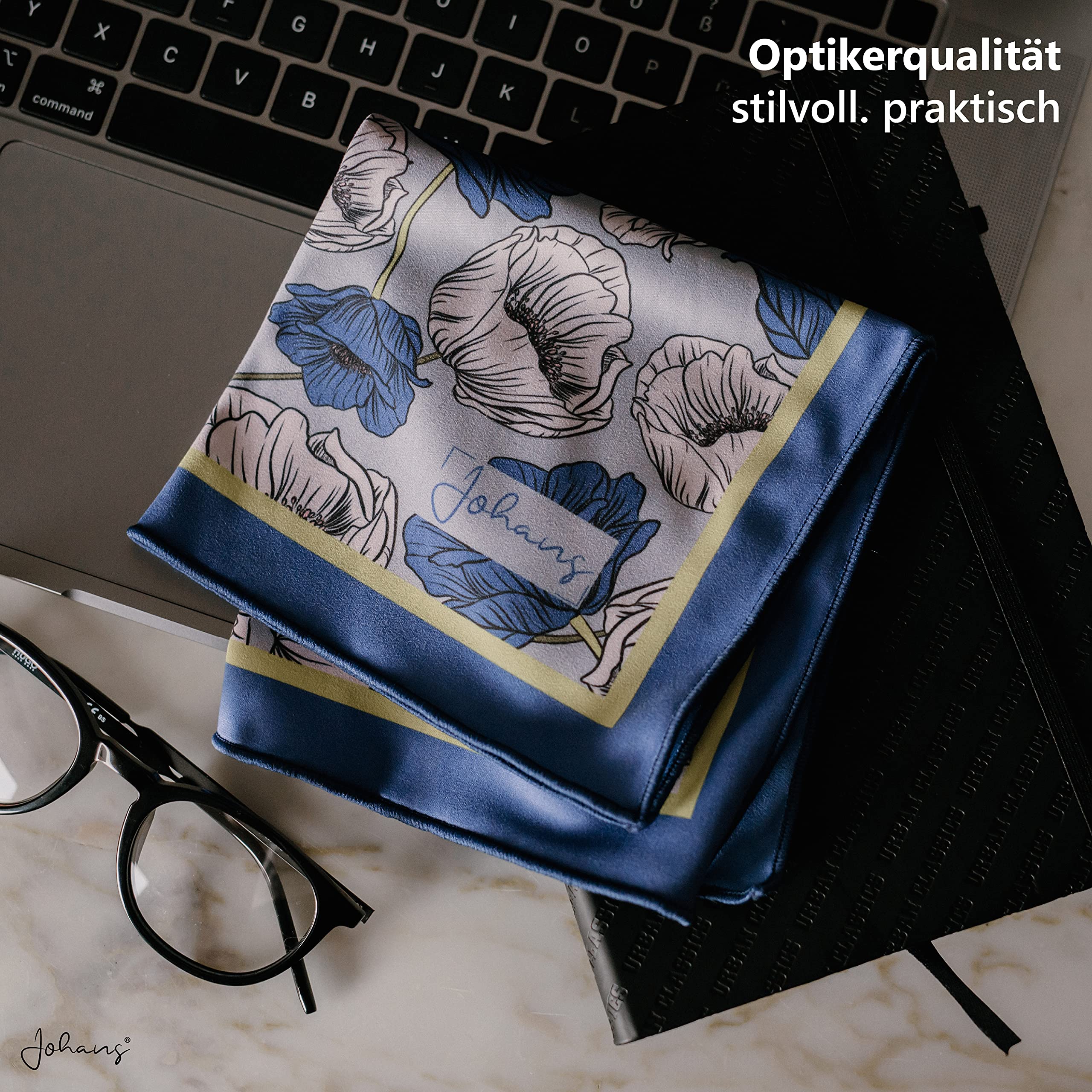 Durch die Grösse (30x30cm) liegt das Johans Tuch besonders gut in der Hand und bietet viel Fläche für eine gründliche Reinigung deiner Brillengläser oder Displays Deiner täglichen Begleiter.