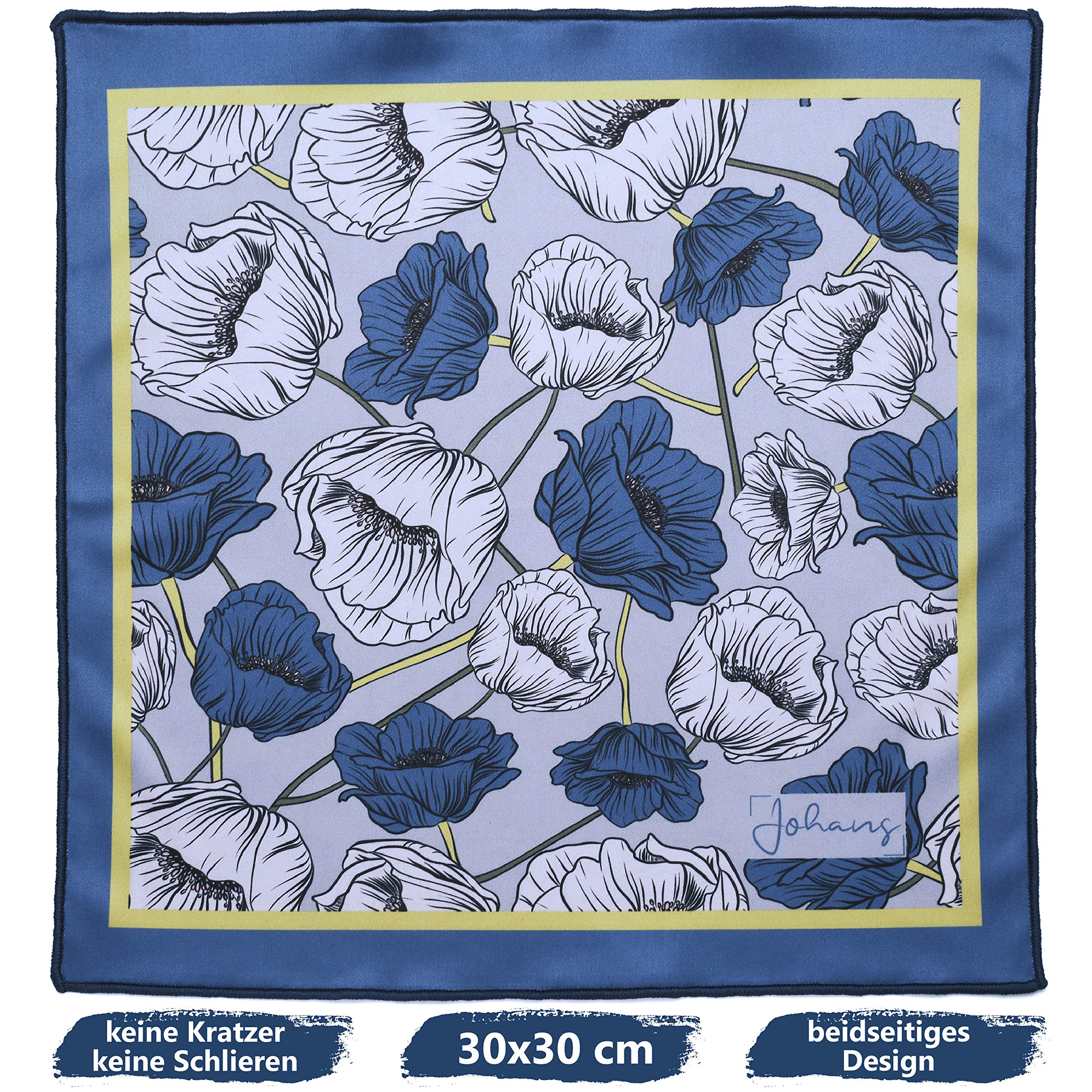 Johans® XXL Mikrofasertuch | Optikerqualität 30x30cm zur Reinigung von Brille, Smartphone, Tablet, Kamera | Brillenputztuch, Displaytuch (Mohn)