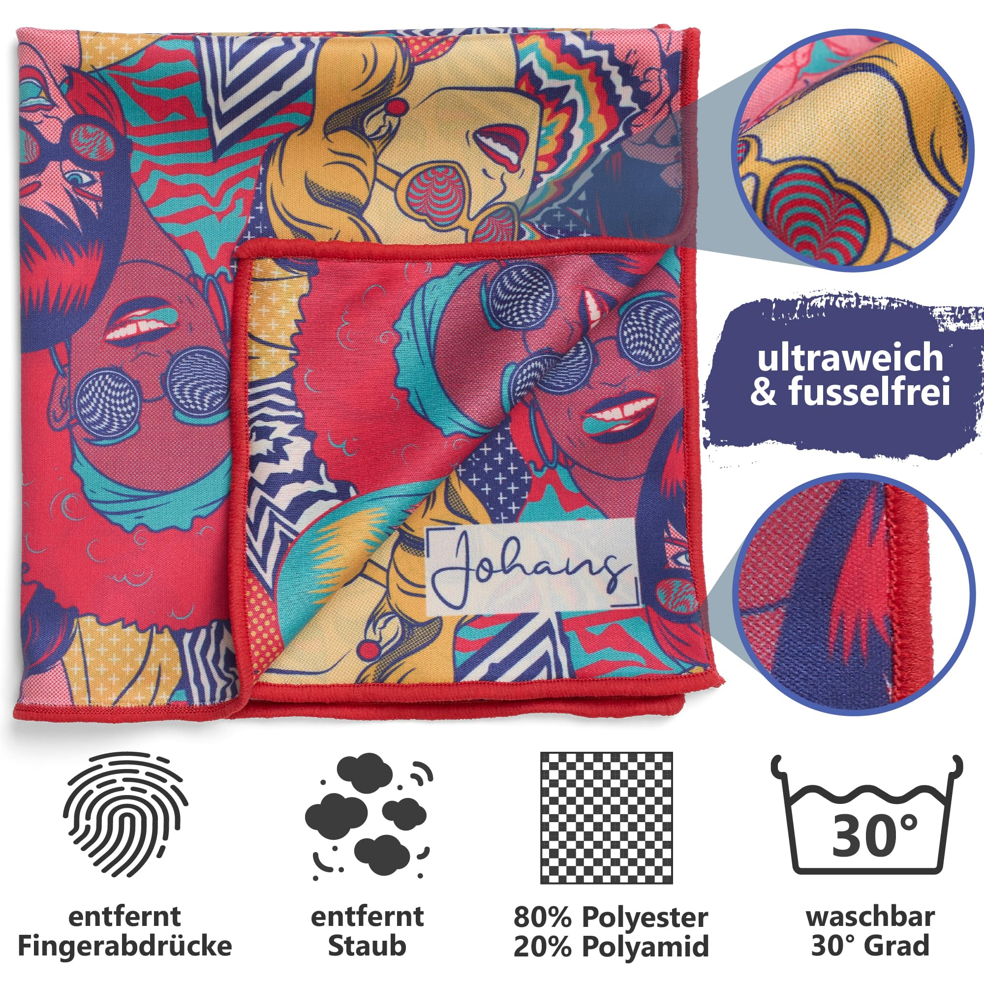 Johans® XXL Mikrofasertuch zur Reinigung von Smartphone, Tablet, Brille, Display, Kamera | Displaytuch, Brillenputztuch, Reinigungstuch | Optikerqualität in 30x30cm (Girls)