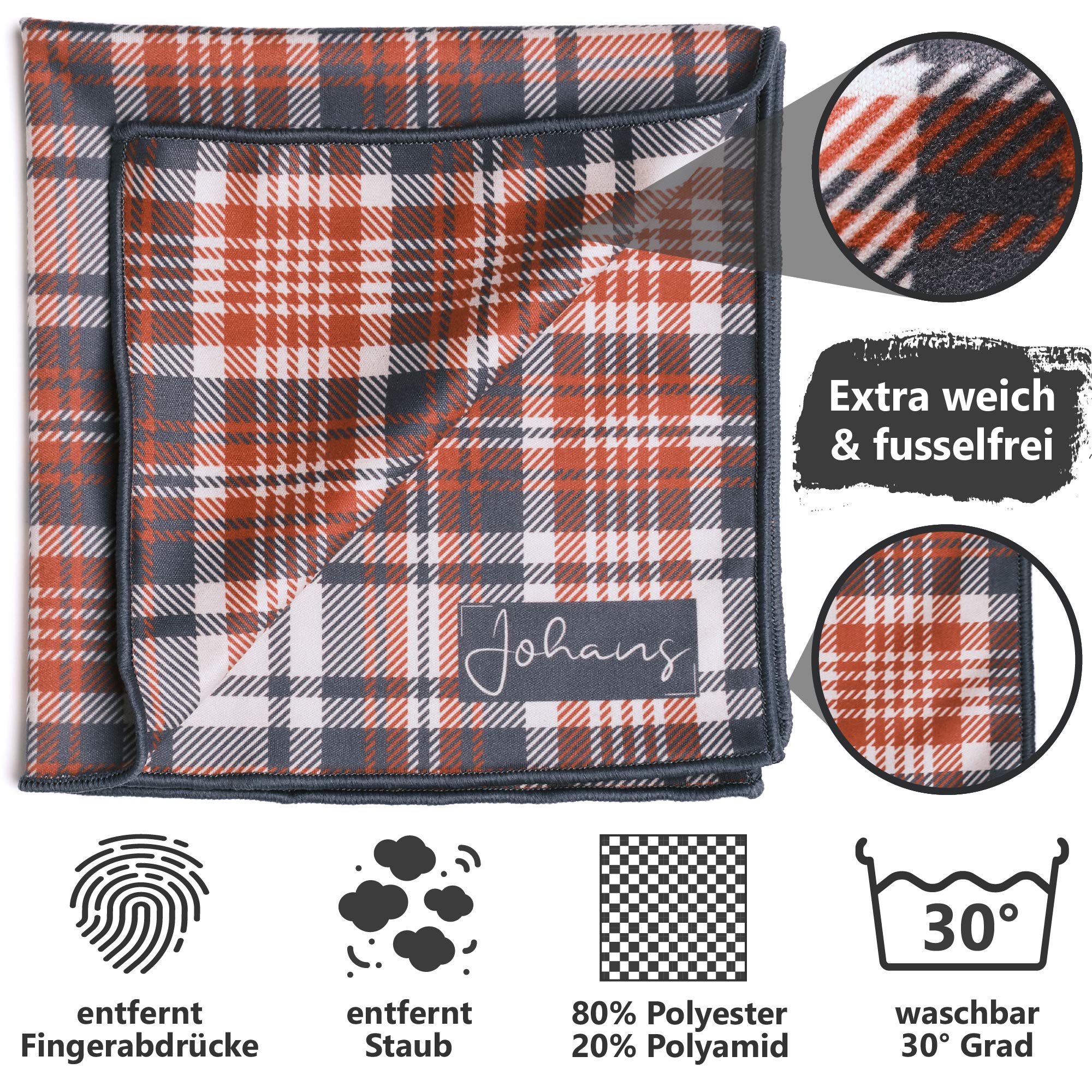 Johans® XXL Mikrofasertuch | Optikerqualität 30x30cm zur Reinigung von Brille, Smartphone, Tablet, Kamera | Brillenputztuch, Displaytuch (Henry)