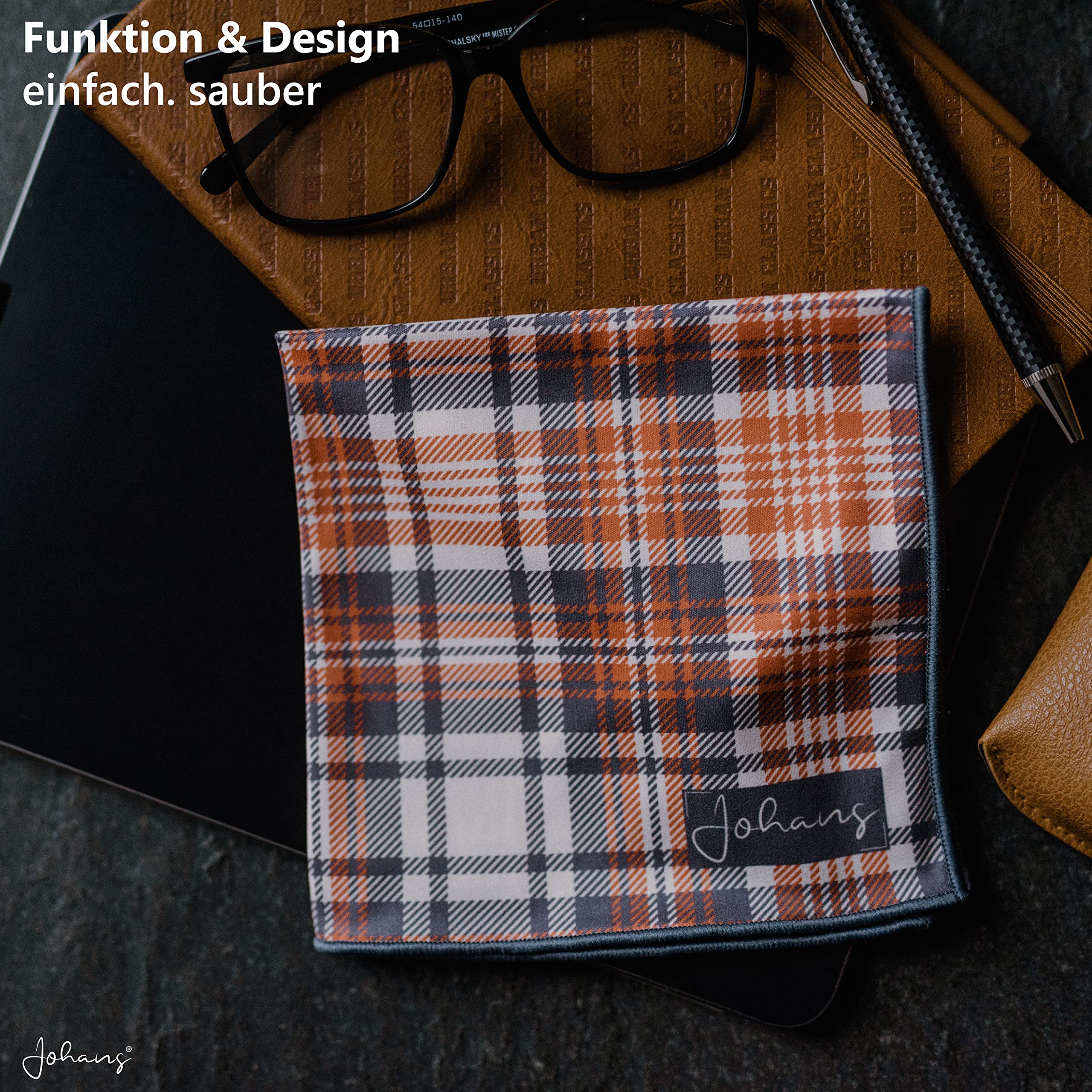 Durch die Grösse (30x30cm) liegt das Johans Tuch besonders gut in der Hand und bietet viel Fläche für eine gründliche Reinigung deiner Brillengläser oder Displays Deiner täglichen Begleiter.