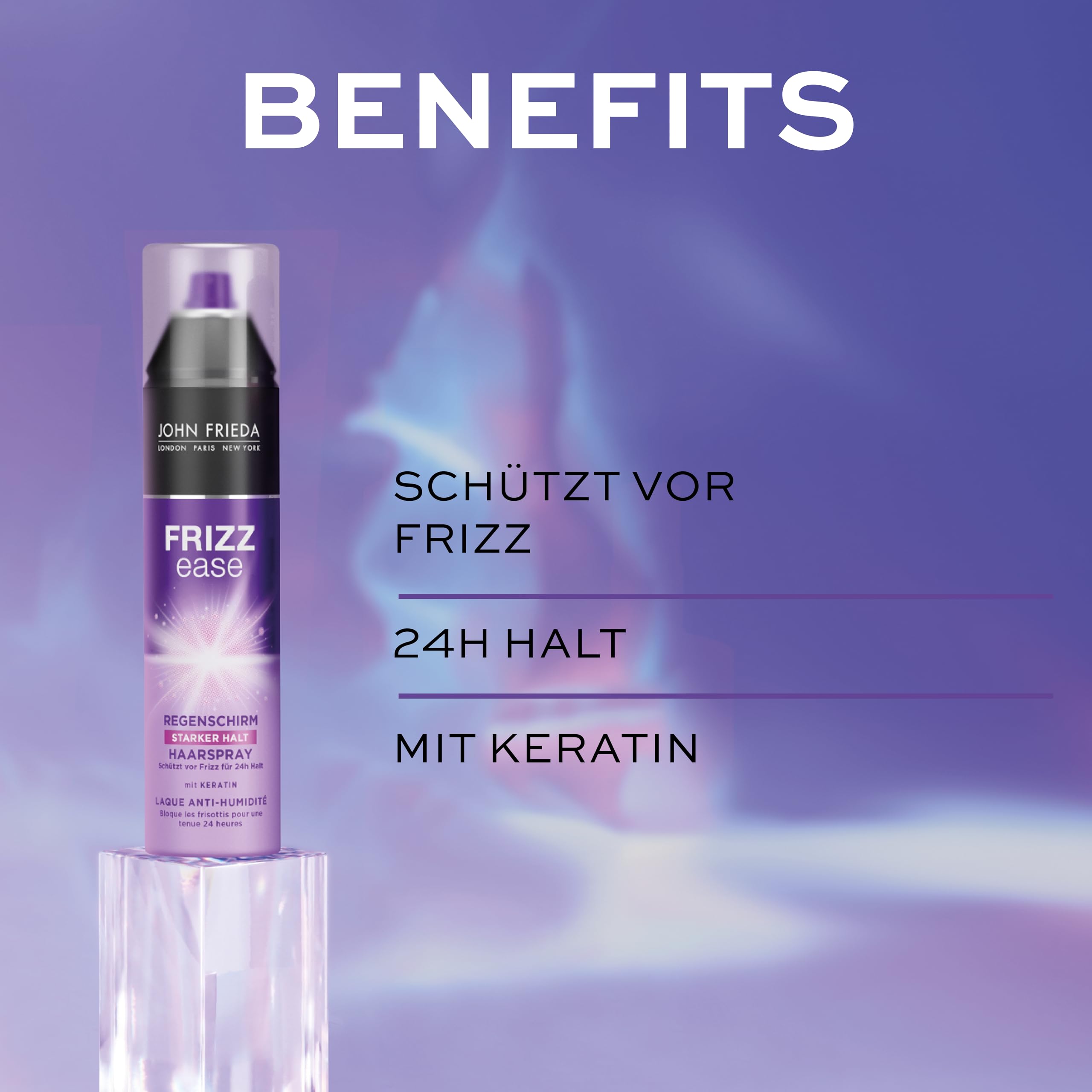 John Frieda Frizz Ease Regenschirm Haarspray - 1er Pack (1 x 250 ml) - 24h-Schutz vor Feuchtigkeit - Hairspray für widerspenstiges Haar - mit Keratin
