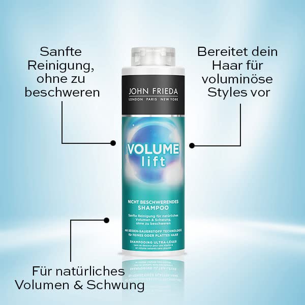 John Frieda Volume Lift Shampoo - Vorteilsgrösse: 500 ml - Für Volumen und Fülle - Haartyp: fein, dünn, platt - Kabinettgrösse (Packung mit 2)