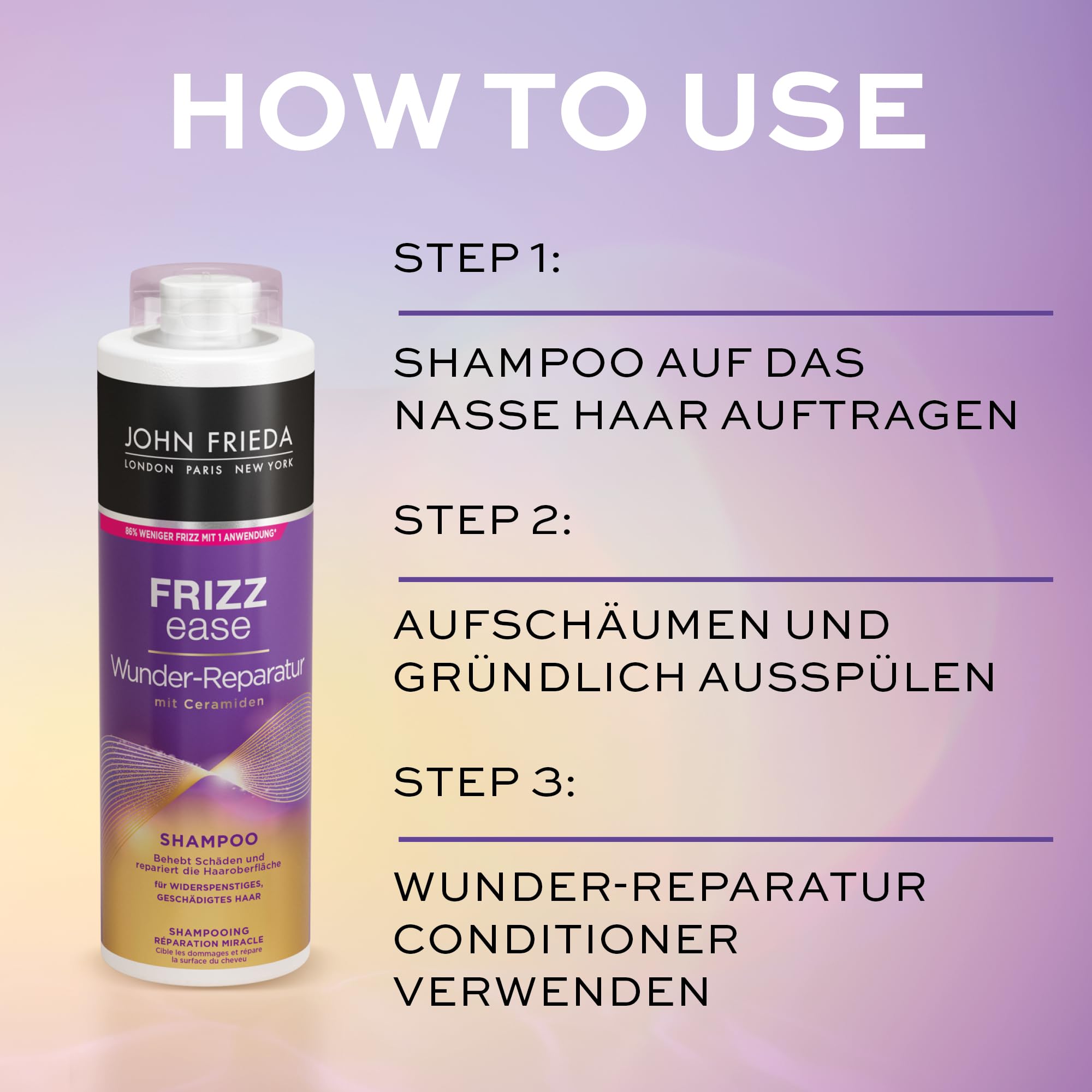 • [ HAARTYP & LIEFERUMFANG ]: John Frieda Wunder-Reparatur Shampoo, 500 ml Vorteilsgrösse - Haartyp: geschädigt, strapaziert, widerspenstig