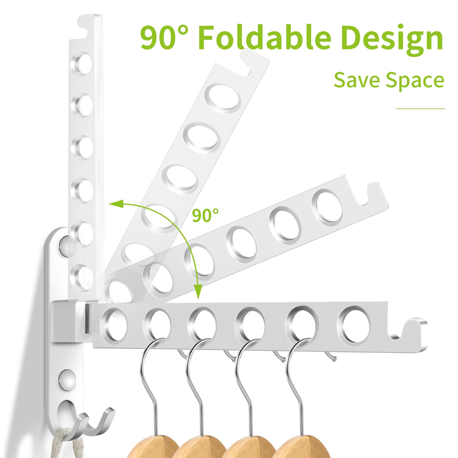 JOLY FANG Wand Kleiderlüfter, Kleiderständer kleiderhaken Klappbar mit Stange, Wandmontage Garderobenhaken Aluminium für Schlafzimmer Waschküche