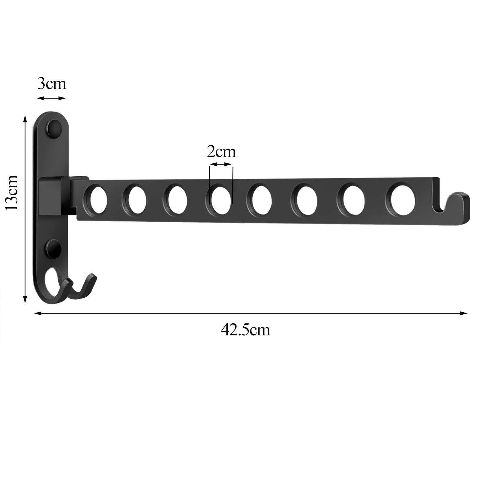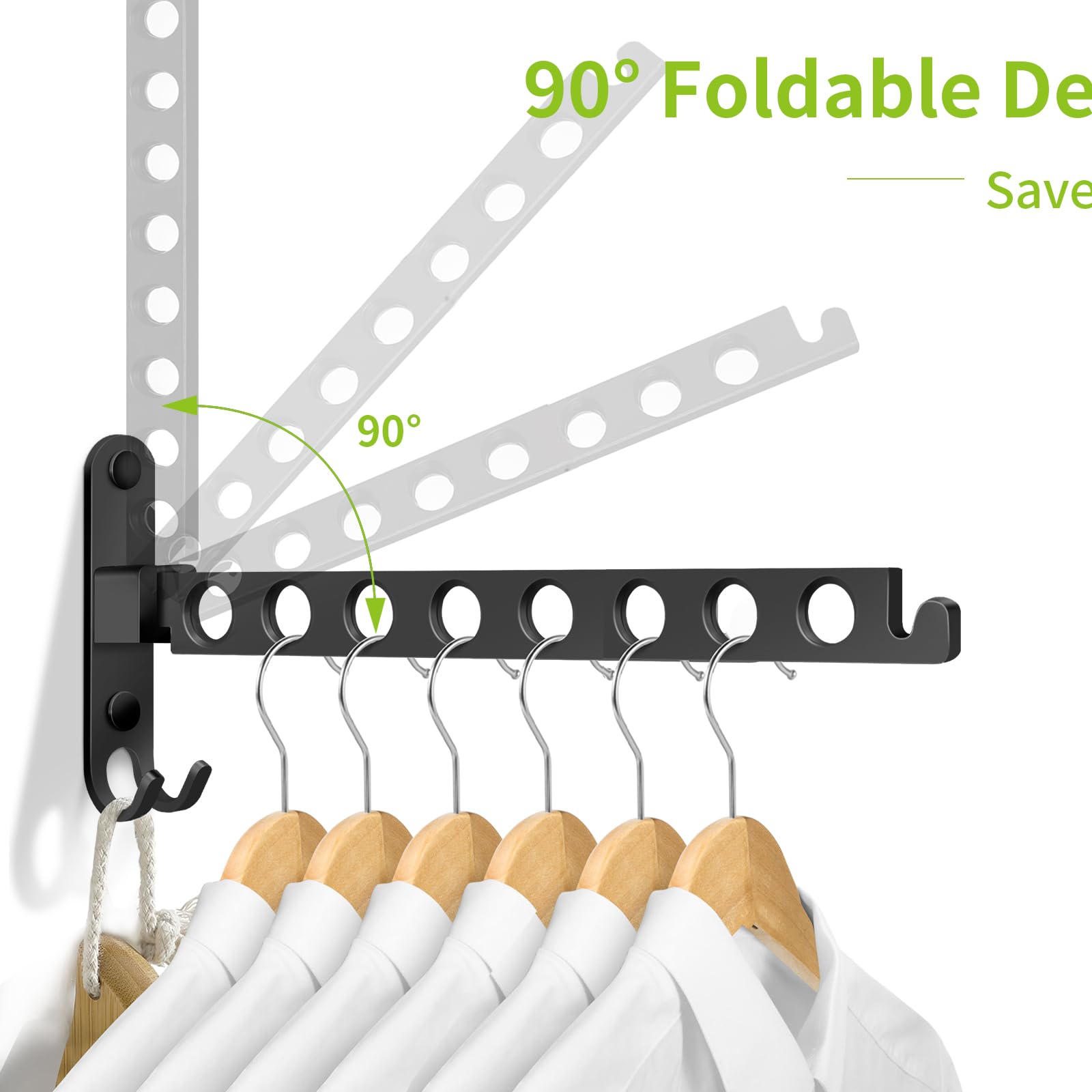 JOLY FANG Kleiderhaken klappbar, Wand Kleiderständer Wandhaken Klapphaken für Balkon Badezimmer Waschküche(Schwarz, 8 Löcher)