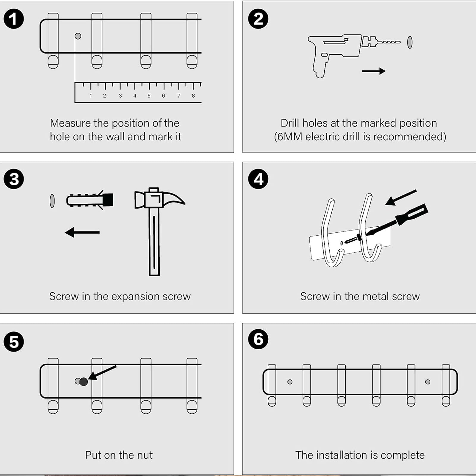 JOLY FANG Wandgarderobe, Garderobenhaken aus Edelstahl, Wandhaken für Schlafzimmer, Badezimmer, Küche (weiss, 6 Haken, 2 Stück)