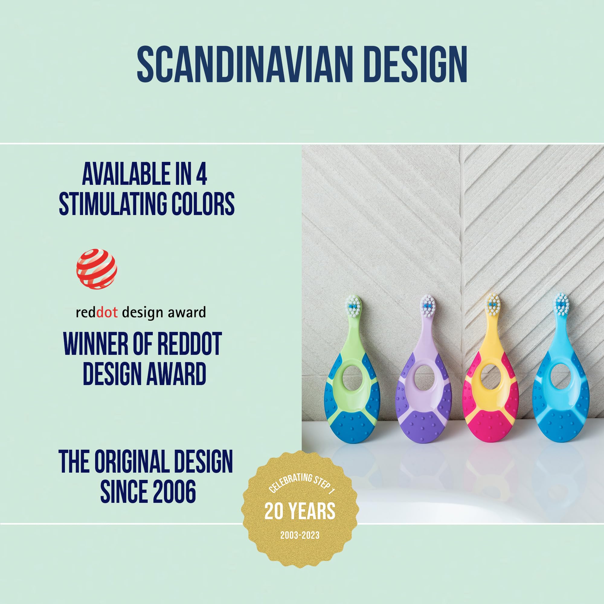 • PACKUNG MIT 2 EINHEITEN - Kinderzahnbürsten in verschiedenen, lustigen Farben. Gewinner des Red Dot Design Awards