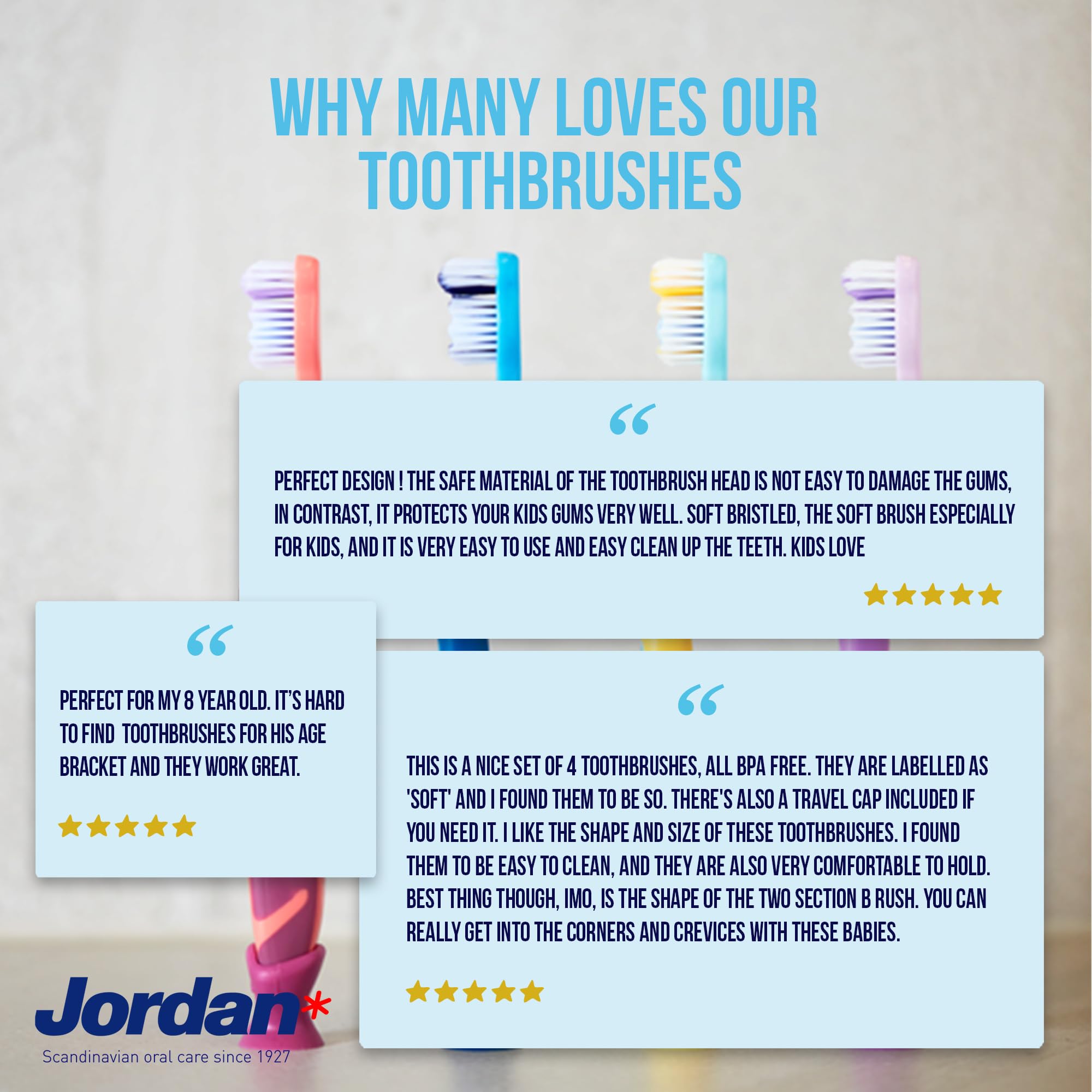 Jordan ® | Step 3 Zahnbürste Kinder | Kinder zahnbürste für 6-9 Jahre | Weiche Borsten, doppelter ergonomischer Griff & BPA-frei | Rosa und Blaue Farbe | Pack 4 Einheiten