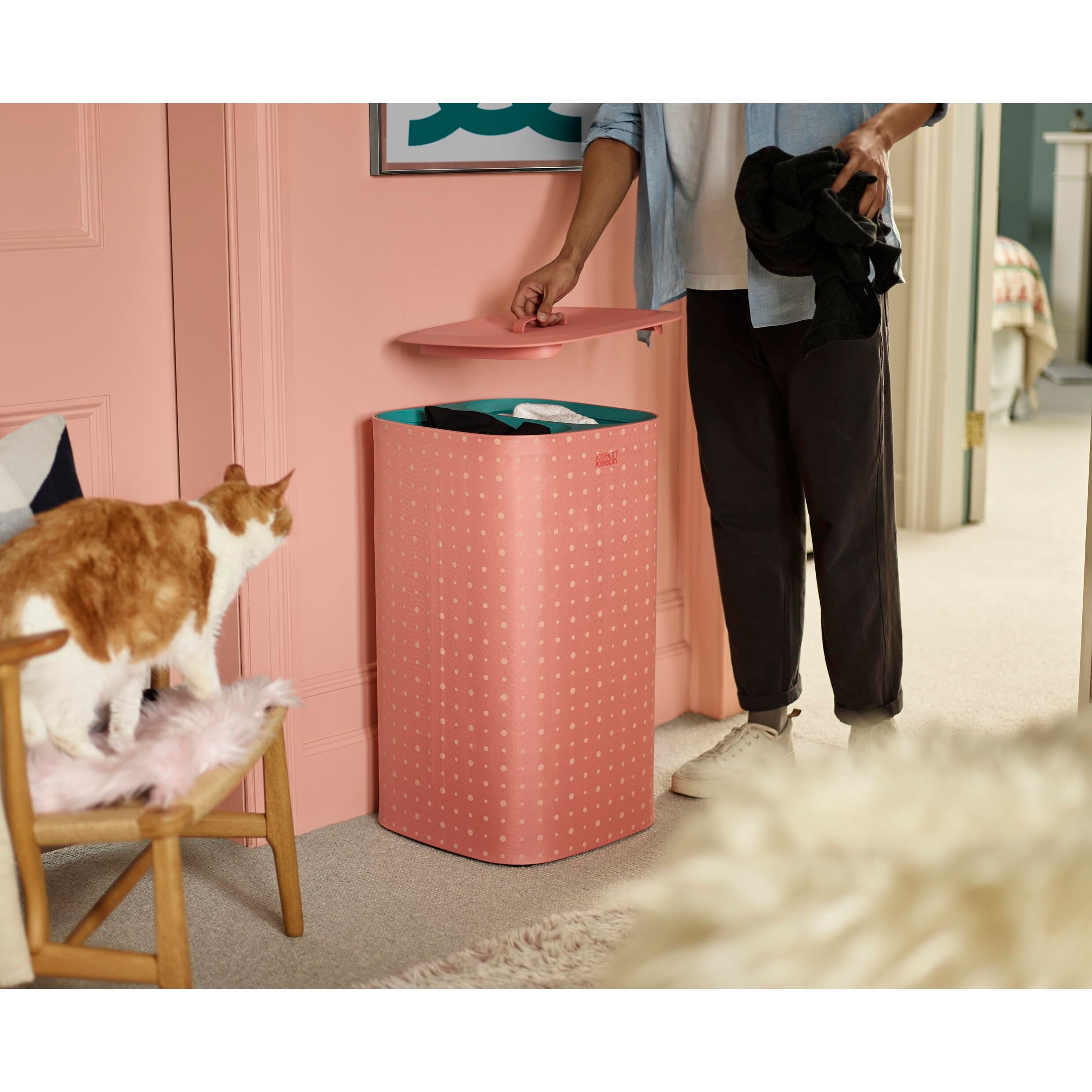 Joseph Joseph Tota Pop - 60-Liter-Wäschesammler mit Deckel, 2 herausnehmbare Wäschesäcke mit Griffen- Koralle/Grün