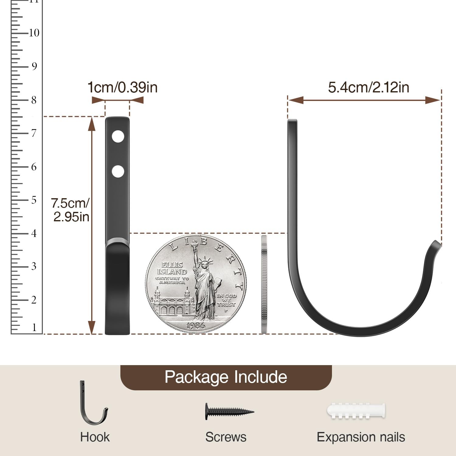 Josmimic Garderobenhaken Handtuchhaken und Haken für Wand - Bohren Wandhaken, Kleiderhaken, Schlüsselhaken für Zahnputzbecher, Bad, WC, 5 Stück, Schwarz, Mit Schrauben