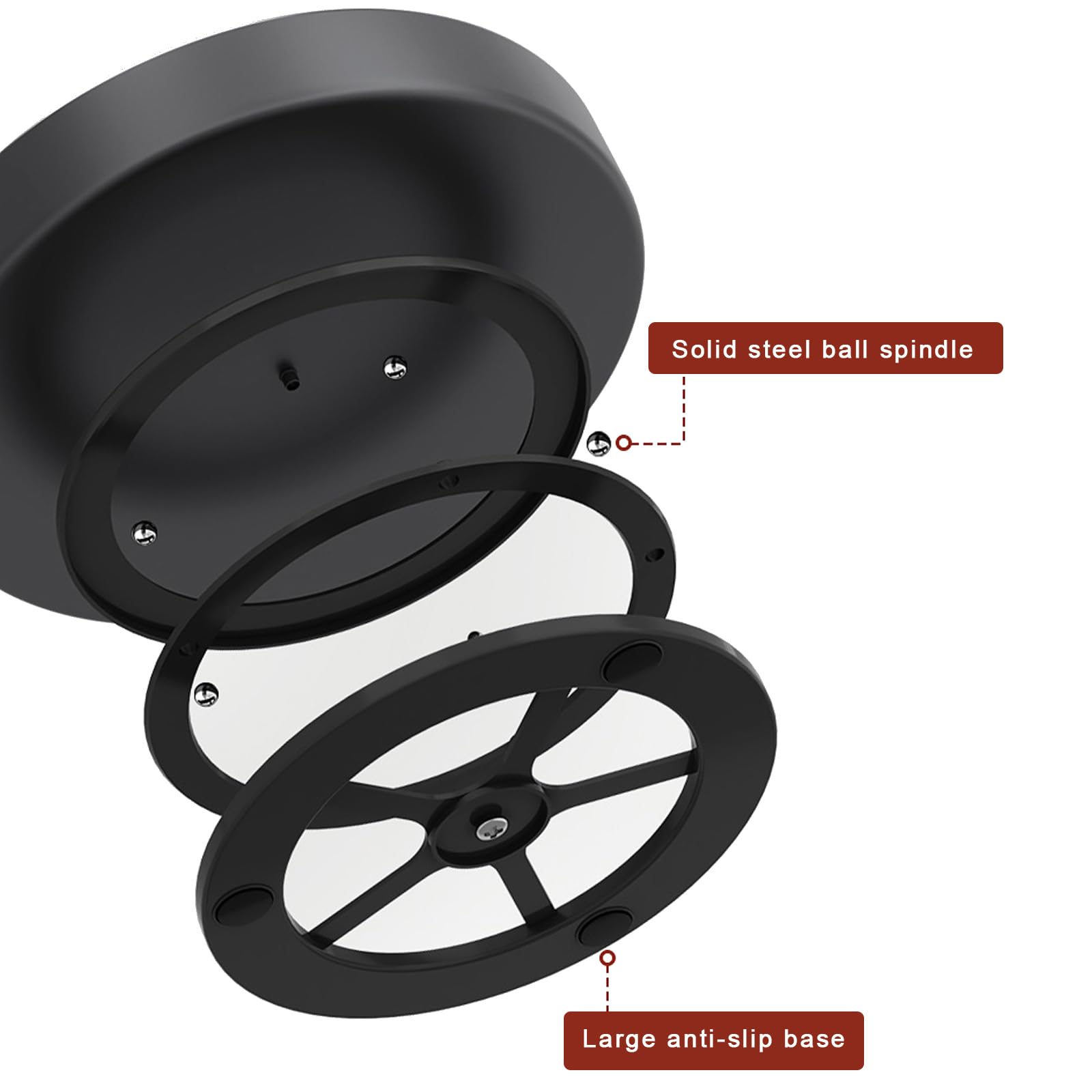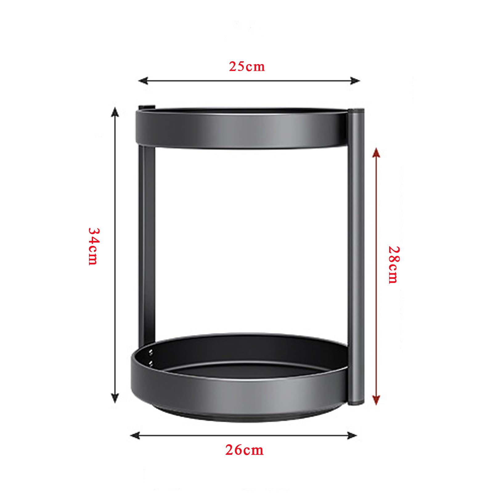 Dieser drehbare Gewürzständer besteht aus hochwertigem Edelstahl mit einer speziellen Metallbeschichtung, die ihn verschleissfest, leicht zu reinigen und rostbeständig macht. Der Boden verfügt über ein 360°-Drehlager für mühelose Rotation. Das Set enthält 3 Klebepunkte, die unter dem Drehteller angebracht werden, um ein Verrutschen zu verhindern. Dieser vielseitige Gewürzständer ermöglicht einen einfachen Zugriff auf Gegenstände, ohne dass eine umfangreiche Suche erforderlich ist, dank des 360°-Drehlagers am Boden. Das Doppelschicht-Design bietet maximalen Stauraum und ermöglicht eine einfache Aufbewahrung von Gegenständen unterschiedlicher Art und Grösse. Mit einem Durchmesser von 25,5 cm und einer Höhe von 34 cm bietet dieser Gewürzständer eine ausgezeichnete Stabilität und Langlebigkeit. Die Installation ist einfach und erfordert nur das Befestigen der Verbindungsstange und Schrauben auf dem Tablett. Jede Schicht des Gewürzständers ist 4,5 cm hoch, mit einer Höhe von 28 cm zwischen den Schichten, um ein Verrutschen der Gegenstände zu verhindern. Die Reinigung ist einfach, da er mit Wasser abgespült oder in die Spülmaschine gelegt werden kann. Er dient nicht nur als Gewürzständer, sondern auch als Aufbewahrungsregal für Küchen, Schminktische, Badezimmer, Schlafzimmer und Arbeitsplatten. Er ist eine ideale Wahl zur Aufbewahrung von Gewürzen, Gewürzmischungen, Konserven, Reinigungsmitteln, Kosmetika, Büromaterialien und vielem mehr.